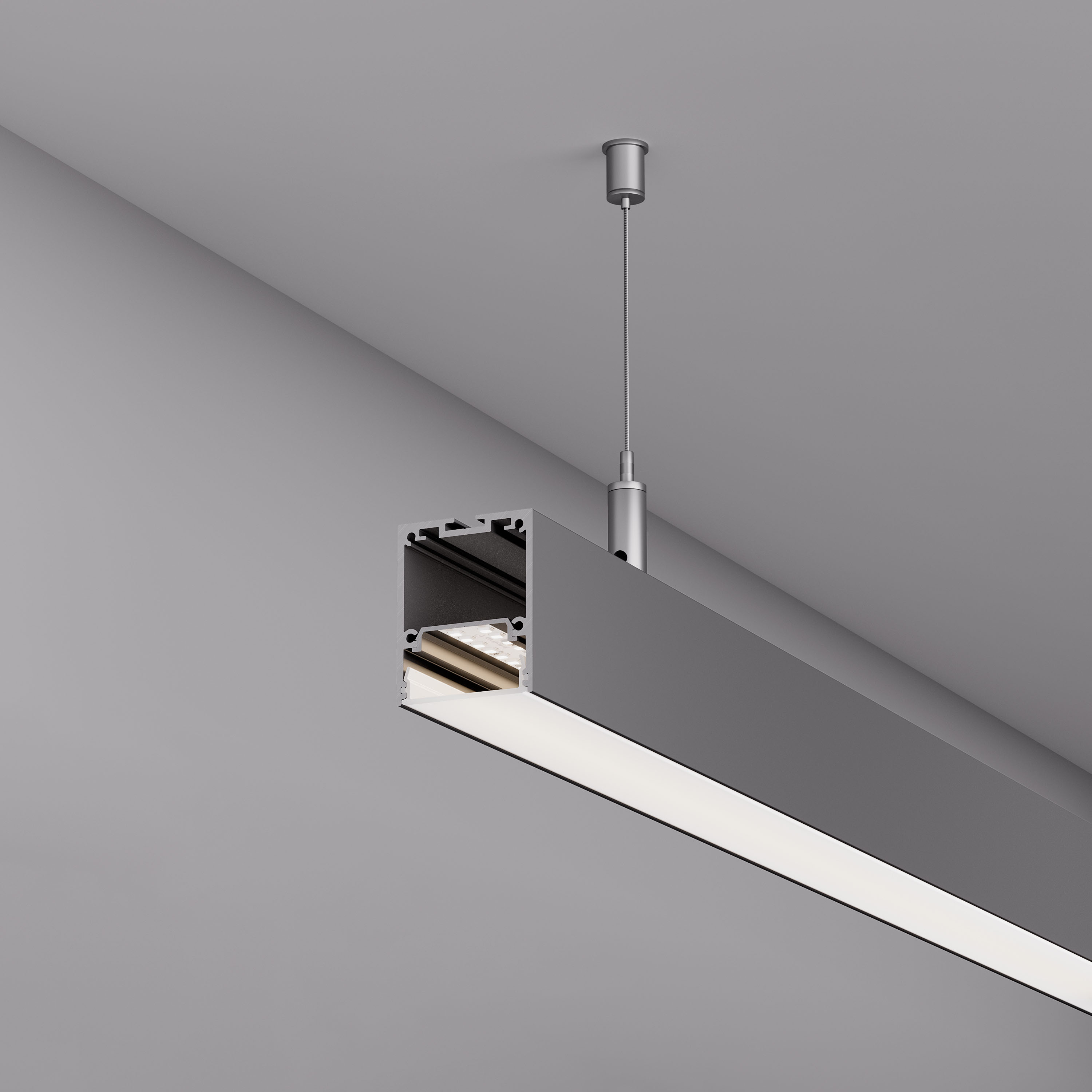Накладной/подвесной профиль из анодированного алюминия серебристого цвета для основного освещения с возможностью герметизации до IP54 с помощью аксессуаров к профилю (уплотнительная резинка, заглушки, экраны, муфты) без дополнительного использования силиконового герметика, до IP65 с помощью аксессуаров к профилю (уплотнительная резинка, заглушки, экраны, муфты) при условии дополнительного использования силиконового герметика. Габаритные размеры профиля составляют 2000 мм в длину, 40 мм в ширину и 50 мм в высоту. Площадка для установки светодиодных лент позволяет использовать ленту шириной до 24 мм и мощностью до 36 Вт/м. Это обеспечивает гибкость в выборе светодиодных лент и позволяет создать потрясающие световые решения. Экран, заглушки и другие аксессуары не включены в комплект и приобретаются отдельно. Цена указана за 1 метр профиля. Отличное решение для создания современных световых проектов.