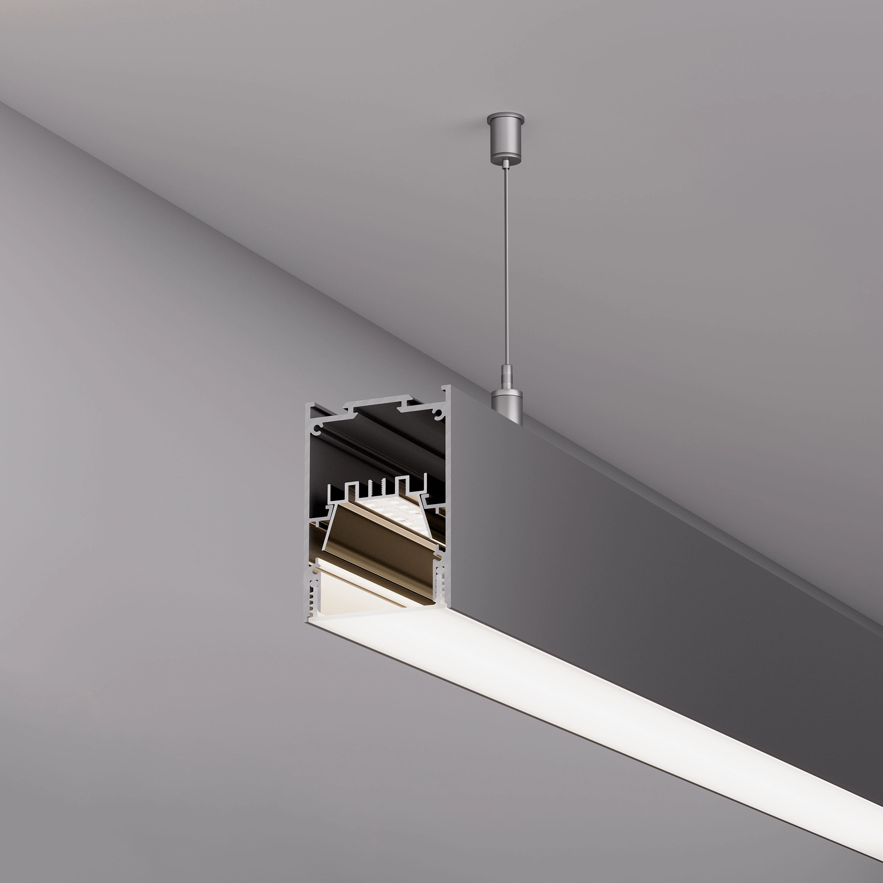 Подвесной профиль из анодированного алюминия серебристого цвета для основного освещения с возможностью герметизации до IP54 с помощью аксессуаров к профилю без дополнительного использования силиконового герметика, до IP65 с помощью аксессуаров к профилю при условии дополнительного использования силиконового герметика. Габаритные размеры профиля составляют 2000 мм в длину, 54,25 мм в ширину и 75 мм в высоту. Площадка для установки светодиодных лент позволяет использовать ленту шириной до 16 мм и мощностью до 36 Вт/м. Это обеспечивает гибкость в выборе светодиодных лент и позволяет создать потрясающие световые решения. Экран, заглушки и другие аксессуары не включены в комплект и приобретаются отдельно. Цена указана за 1 метр профиля. Отличное решение для создания современных световых проектов.