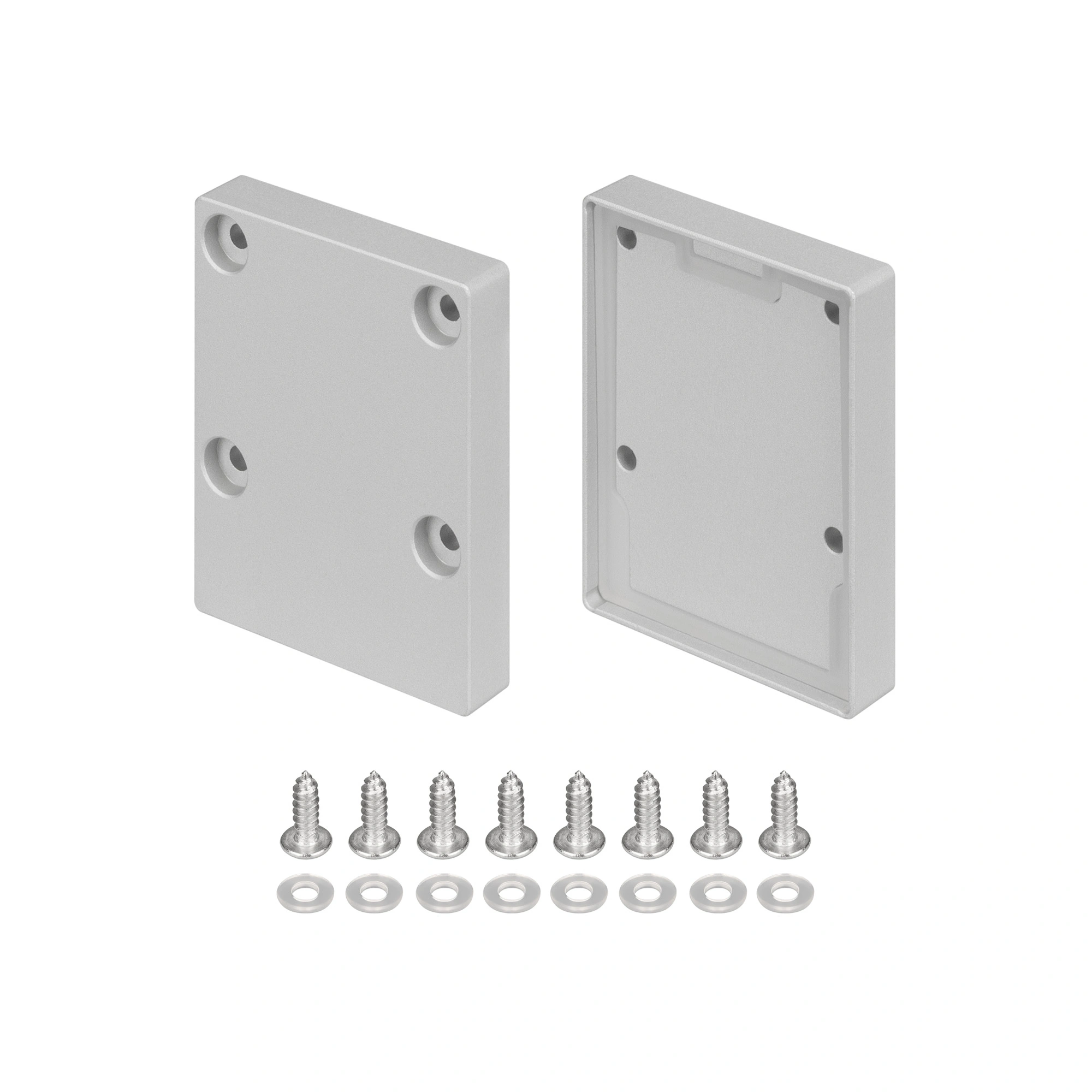 Пара алюминиевых заглушек с силиконовым слоем внутри для герметизации профиля IP-LINE-4050. Цвет - серебристый. В комплекте: заглушка без отверстия с силиконовой прокладкой - 2 шт., винт - 8 шт., уплотнительная шайба для винта из пластика - 8 шт. Цена за комплект.