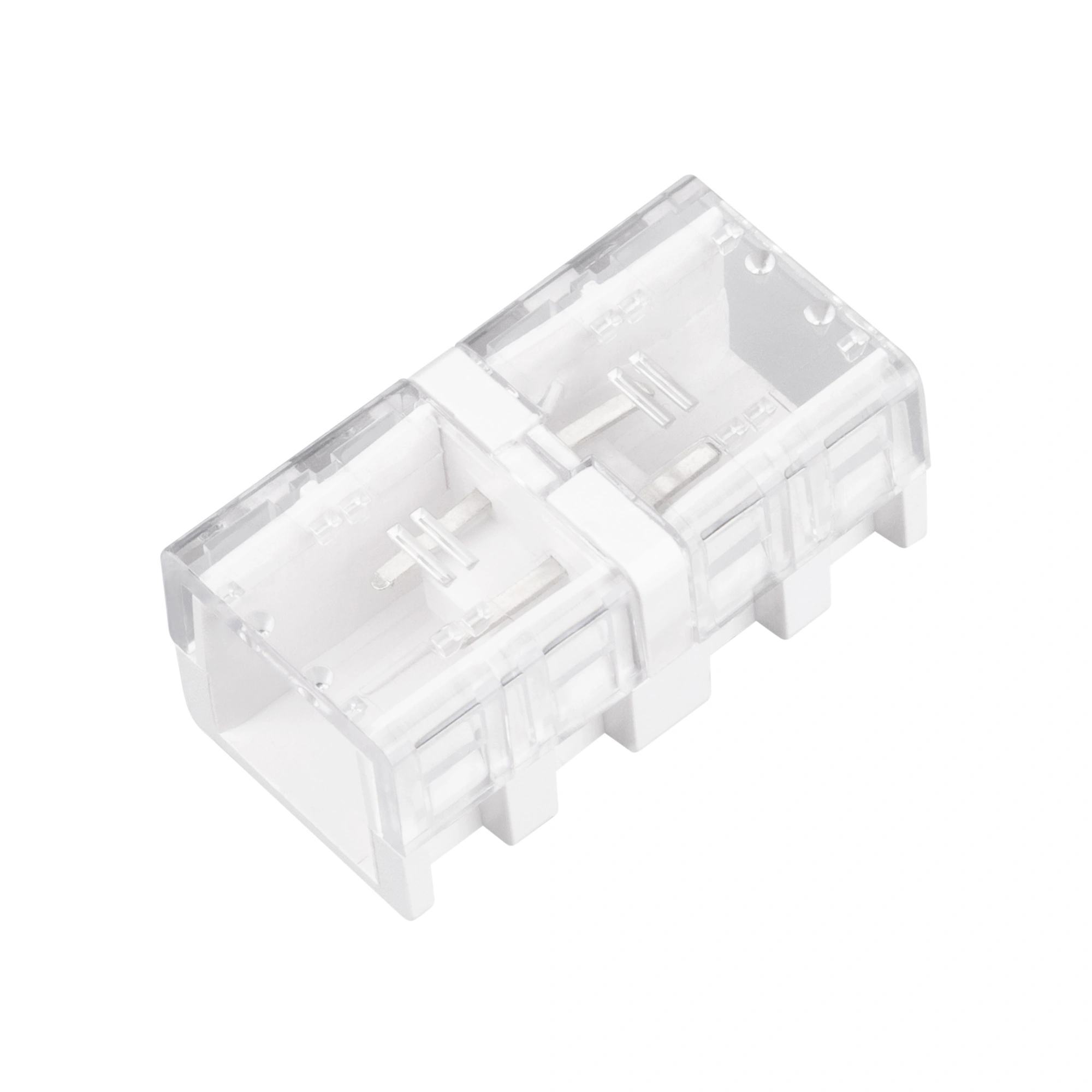 Коннектор прямой для соединения двух отрезков светодиодных герметичных лент ARL серии U320 с напряжением питания 230 В. Используется для герметизации и подключения питания лент после разреза, для установки использовать нейтральный силиконовый герметик. Материал - прозрачный пластик. Цена за 1 шт.