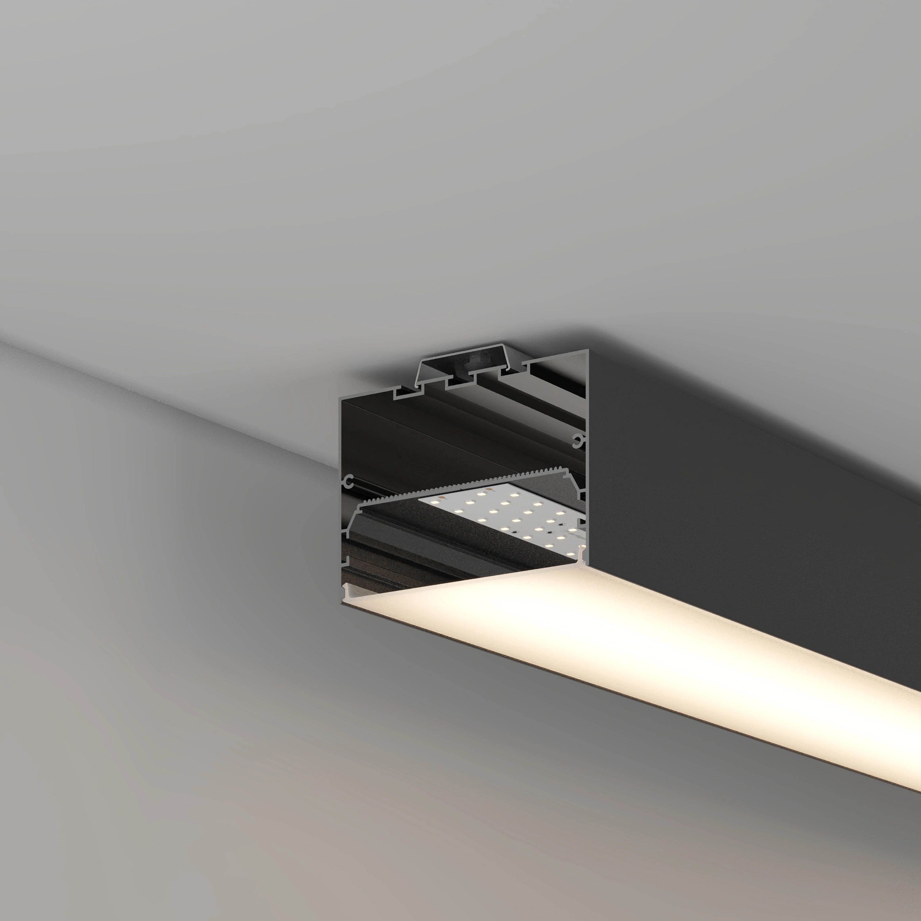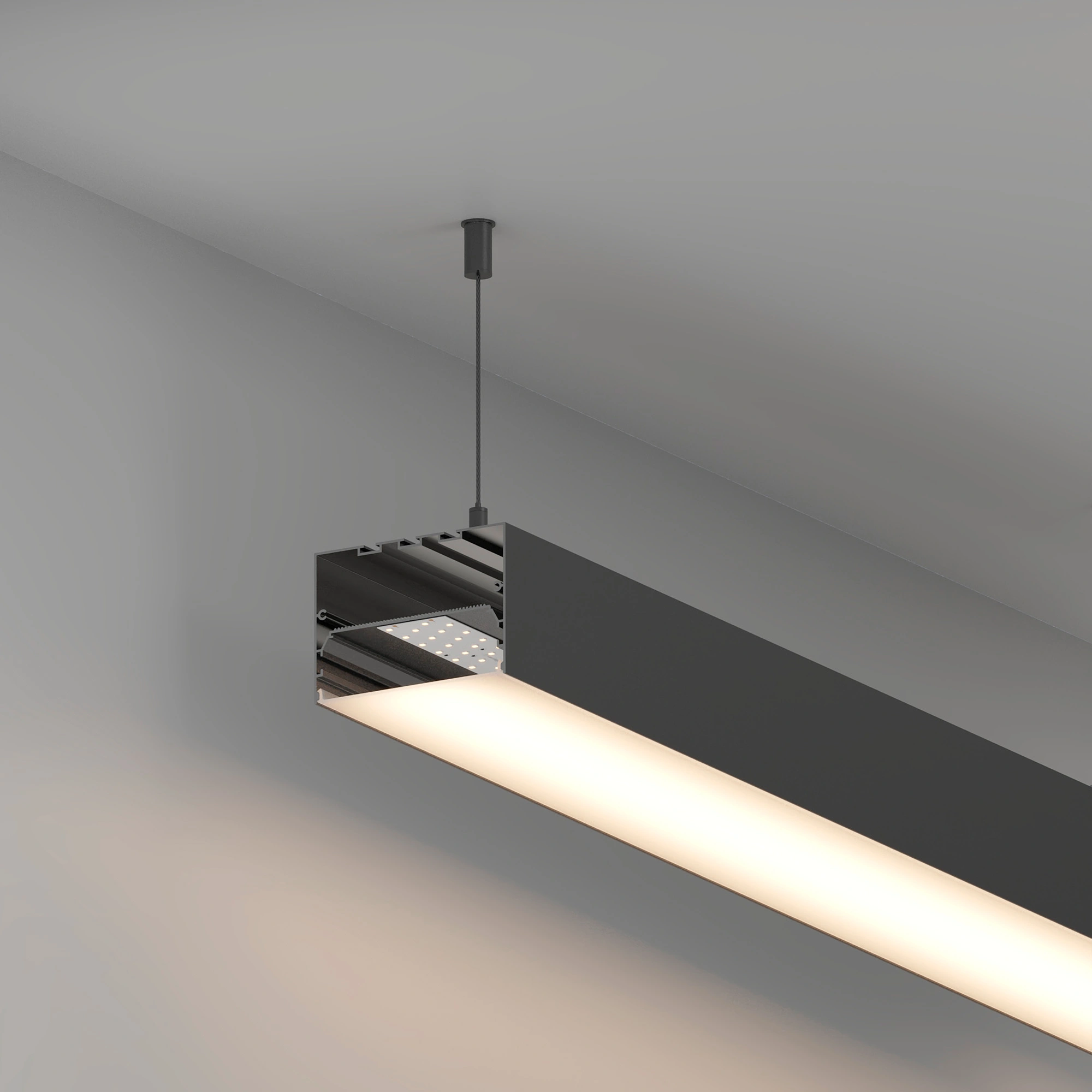 Накладной/подвесной профиль из алюминия черного цвета (RAL9004, порошковая окраска) для создания линейных светильников. Подходит для основного освещения. Габаритные размеры профиля составляют 2000 мм в длину, 100 мм в ширину и 70,4 мм в высоту. Площадка для лент позволяет использовать светодиодную ленту шириной до 80 мм и мощностью до 89 Вт/м. Размер отсека для блока питания: 87,2х32 мм. Это обеспечивает гибкость в выборе светодиодных лент и создает потрясающие световые решения. Экран, заглушки и другие аксессуары не включены в комплект и приобретаются отдельно. Цена указана за 1 метр профиля. Отличное решение для создания современных световых проектов.