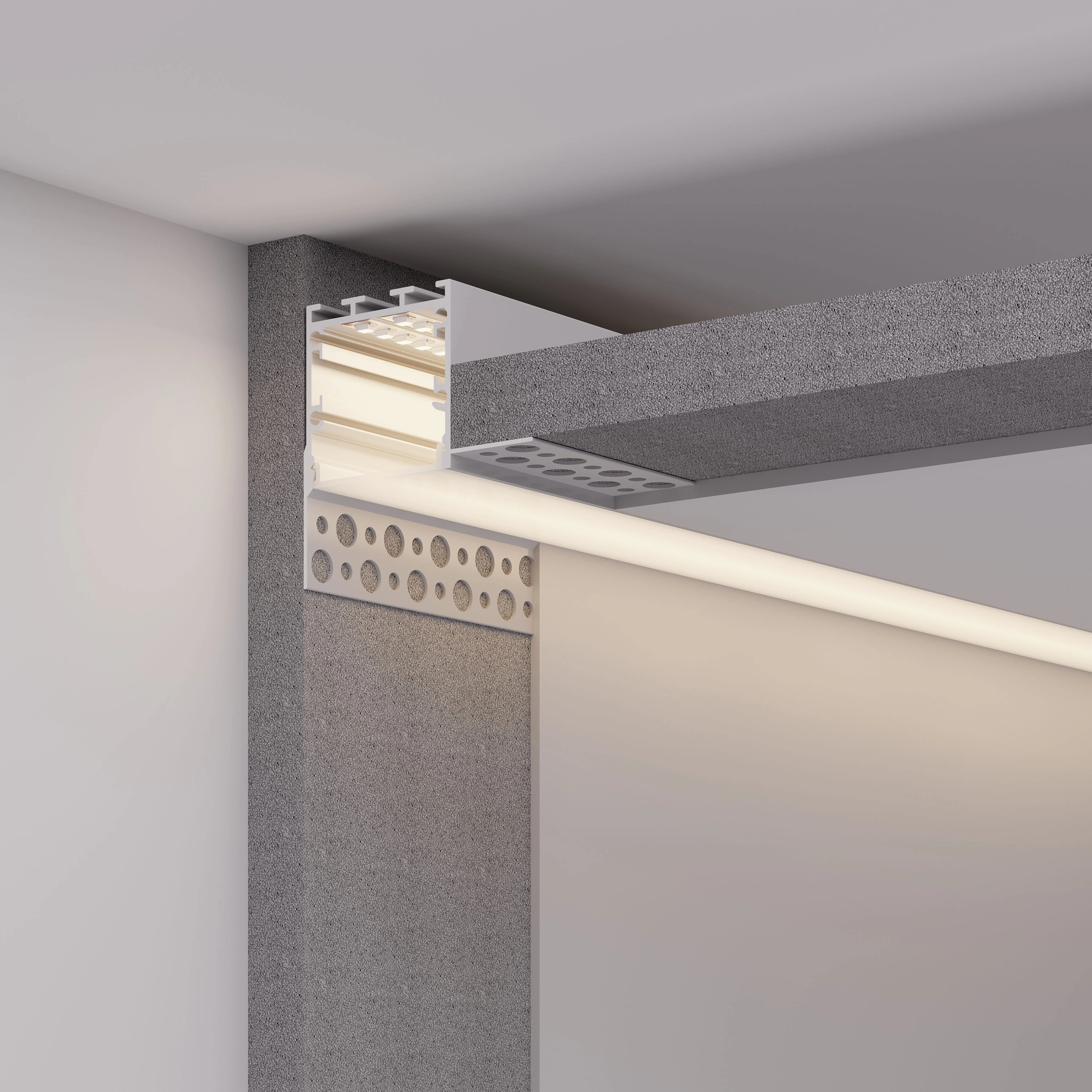 Встраиваемый профиль из анодированного алюминия со скрытым фланцем под строительную отделку устанавливается в потолки и потолочные ниши из гипсокартона для контурной подсветки помещений. Габаритные размеры профиля составляют 2000 мм в длину, 54,8 мм в ширину и 54 мм в высоту. Площадка для установки светодиодных лент позволяет использовать ленту шириной до 26 мм и мощностью до 46 Вт/м. Это обеспечивает гибкость в выборе светодиодных лент и создает потрясающие световые решения. Экраны, заглушки и другие аксессуары не включены в комплект и приобретаются отдельно. Цена указана за 1 метр профиля. Отличное решение для создания современных световых проектов.