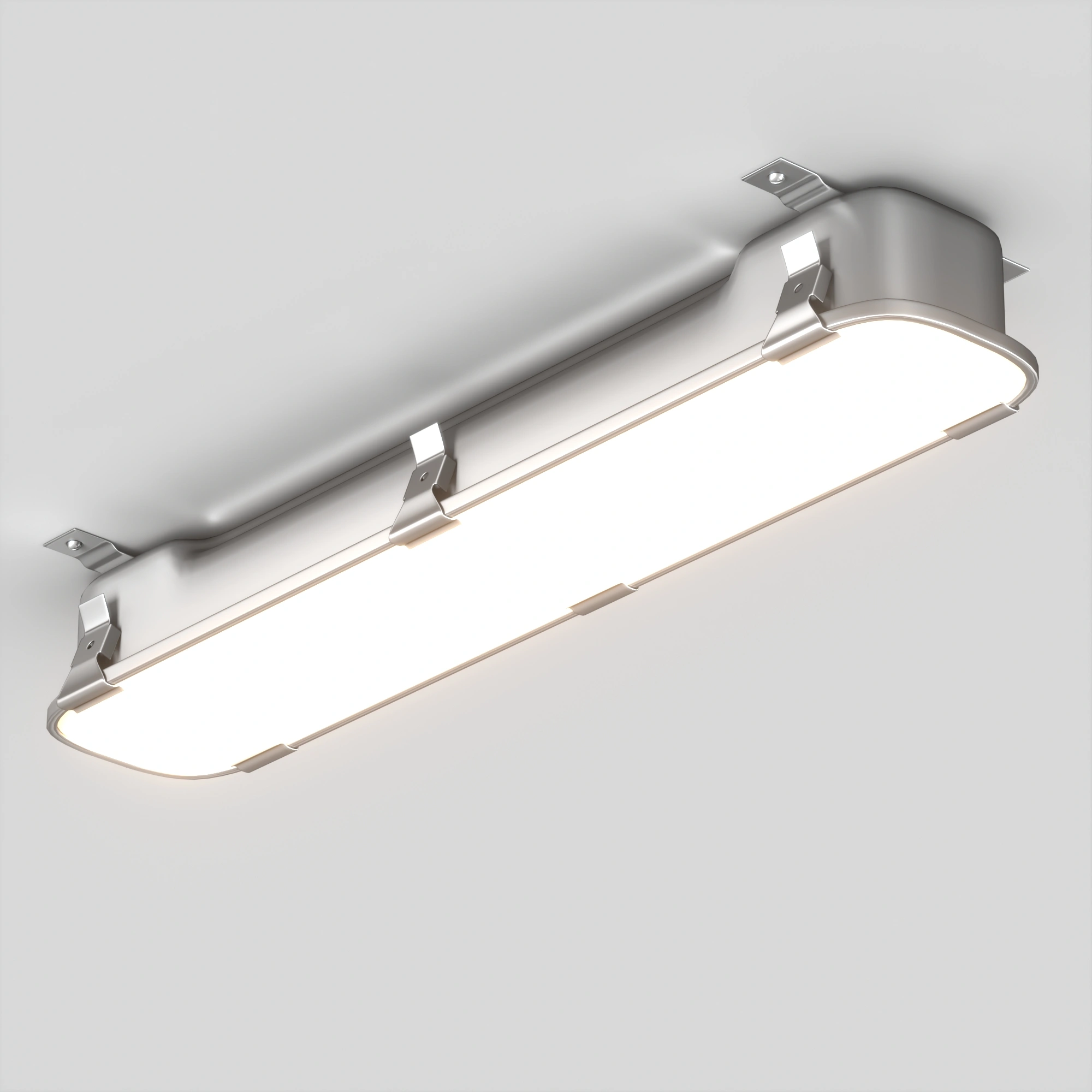 Влагозащищенный линейный светильник SP-KATANO мощностью 20 Вт, дневного цвета свечения 4000K, световым потоком 2100 лм и углом рассеивания 100° градусов предназначен для освещения в технических и в пожароопасных помещениях. Прямоугольный корпус выполнен из нержавеющей стали AISI 304, габариты 708x138x104 мм, степень пылевлагозащиты IP65. Индекс цветопередачи CRI 80. Материал рассеивателя: закаленное стекло. Возможность накладного и подвесного монтажа позволяет легко адаптировать светильники под любые требования помещения. Для подвесного монтажа необходимо использовать подвесы 060754.