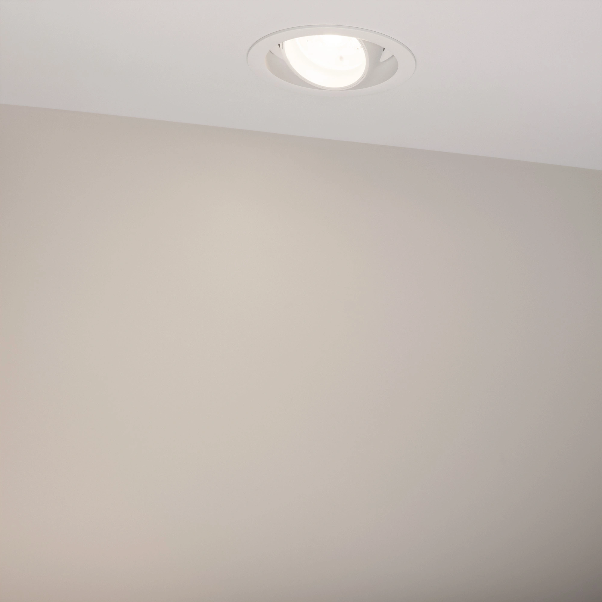 Встраиваемый карданный поворотный светильник с высоким индексом цветопередачи CRI>92 предназначен для создания качественного освещения. За основу поворотного механизма светильника взят принцип кардана – подвижное соединение двух колец, вложенных одно в другое. Световой модуль вращается вокруг своей оси на 360 градусов и отклоняется от горизонта на 30 градусов, что позволяет с лёгкостью регулировать направление пучка света и его концентрацию на определенной зоне. Особая конфигурация корпуса из алюминия оригинально смотрится в интерьере и позволяет эффективно отводить тепло. Светильник с углом рассеивания 17 градусов отлично подходит как для локальной акцентной подсветки витрин, прилавков магазинов, бутиков и стендов выставочных залов. Легко устанавливается с помощью пружин в монтажное отверстие потолка. В комплекте поставляется драйвер, что позволяет безопасно и быстро подключать светильник напрямую к сети переменного тока 230 В.