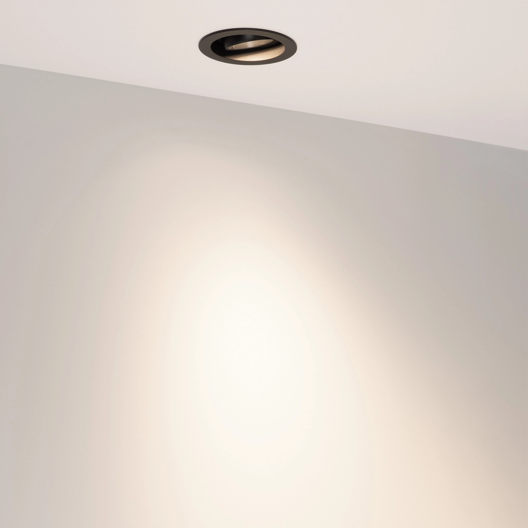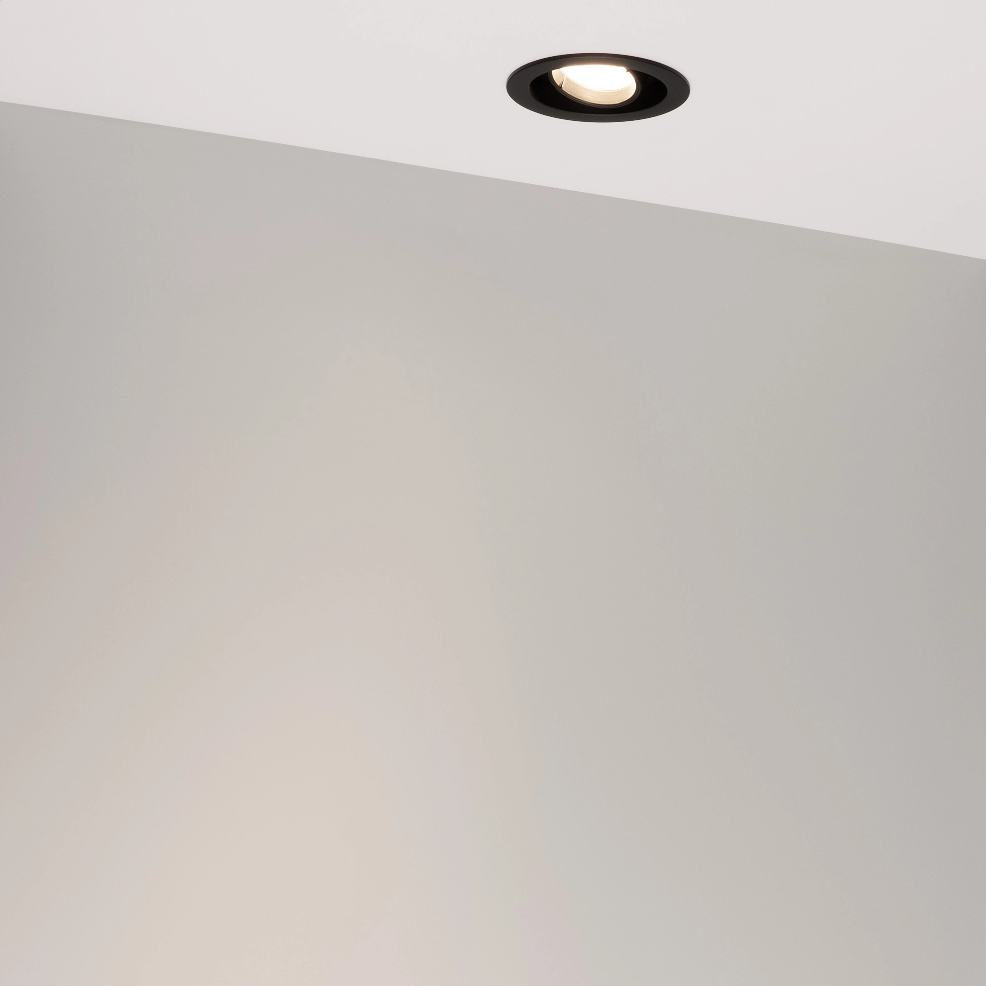Встраиваемый карданный поворотный светильник с высоким индексом цветопередачи CRI>92 предназначен для создания качественного освещения. За основу поворотного механизма светильника взят принцип кардана – подвижное соединение двух колец, вложенных одно в другое. Световой модуль вращается вокруг своей оси на 360 градусов и отклоняется от горизонта на 30 градусов, что позволяет с лёгкостью регулировать направление пучка света и его концентрацию на определенной зоне. Особая конфигурация корпуса из алюминия оригинально смотрится в интерьере и позволяет эффективно отводить тепло. Светильник с углом рассеивания 40 градусов отлично подходит как для локальной акцентной подсветки витрин, прилавков магазинов, бутиков и стендов выставочных залов, так и для общего освещения. Легко устанавливается с помощью пружин в монтажное отверстие потолка. В комплекте поставляется драйвер, что позволяет безопасно и быстро подключать светильник напрямую к сети переменного тока 230 В.