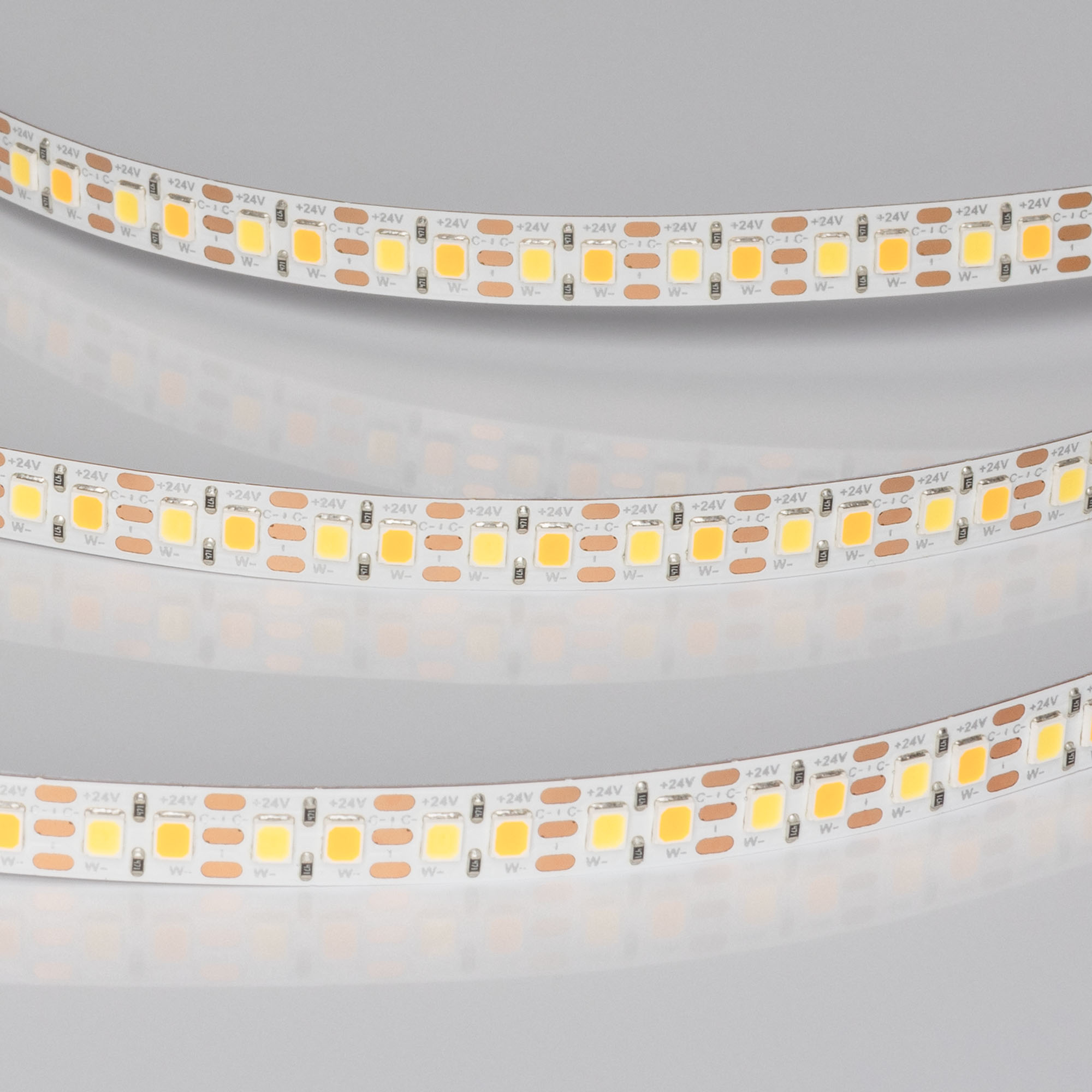 Светодиодная лента UL серии A168, шириной 8 мм, мощностью 18 Вт/м, с изменяемым цветом свечения (MIX) в диапазоне от белого (6000K) до теплого (2700K). Напряжение питания 24 В. Светодиоды SMD 2835, 168 шт/м. Высокий индекс цветопередачи CRI>90, обеспечивающий точное восприятие цветов при освещении любых жилых и коммерческих помещений. Минимальный отрезок 11.9 мм (2 светодиода). Двухканальная лента с тремя проводами для подключения, управляется MIX-контроллером. Применяется для создания биодинамического освещения, декоративной подсветки элементов интерьера, мебели. Обязательна установка на профиль.