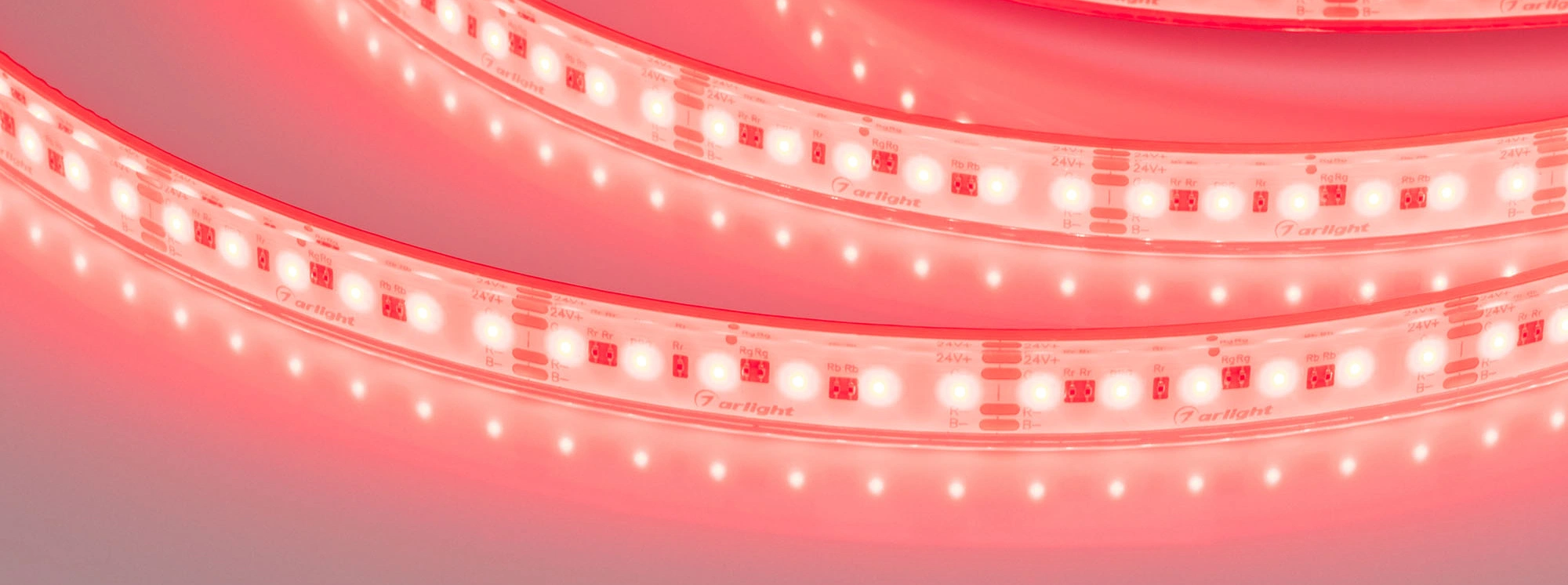 Герметичная мультицветная лента шириной 12 мм с высокой степенью пылевлагозащиты IP68. Мощность 14 Вт/м, напряжение питания 24 В. Декоративная мультицветная подсветка ниш, элементов декора. Подсветка рекламных конструкций и витрин. Управляется RGB-контроллером. Минимальный отрезок 50 мм (6 светодиодов). Лента обладает повышенной эластичностью. Диапазон рабочих температур окружающей среды -40...60°C.