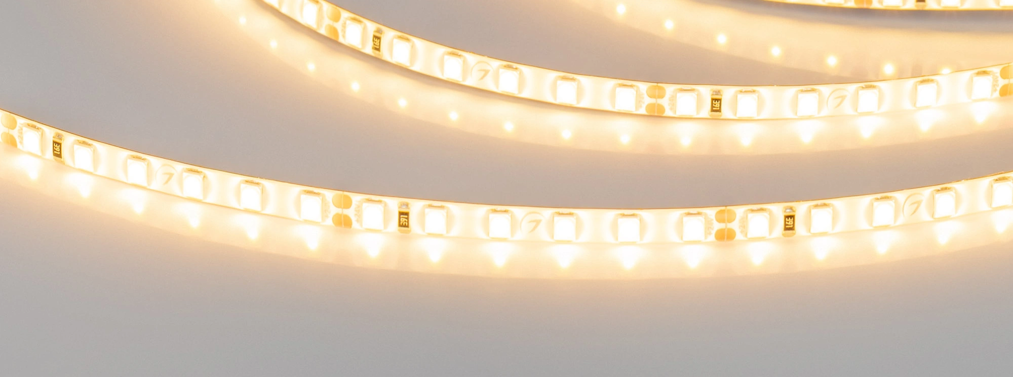 Светодиодная герметичная лента RTW серии A120 шириной 5 мм, мощностью 9.6 Вт/м, степень защиты IP65. Напряжение питания 24 В. Светодиоды SMD 2835, 120 шт/м, теплого цвета свечения (2700K). Индекс цветопередачи CRI>85. Минимальный отрезок 50 мм (6 светодиодов). Применяется для декоративной подсветки любых жилых, коммерческих помещений, декоративной подсветки интерьеров, потолочных ниш, рабочих зон кухни, влажных зон, рекламы и витрин.