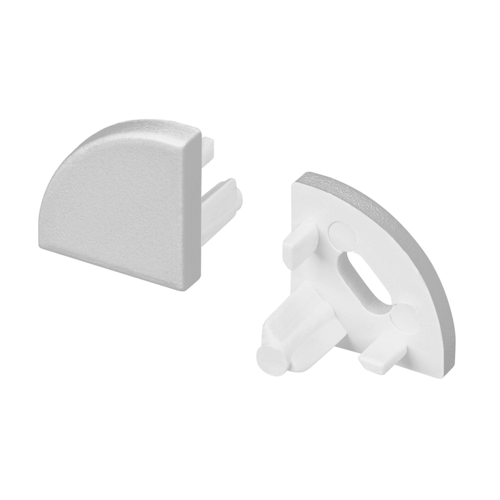 Серебристые заглушки (2 шт.: одна- с отверстием, вторая - глухая) для профиля ARH-KANT-H10. Придают законченный вид светильнику, а также защищают светодиодную ленту от внешних факторов (грязи, пыли и прочего). Отверстие в заглушке позволяет вывести кабель питания светодиодной ленты.