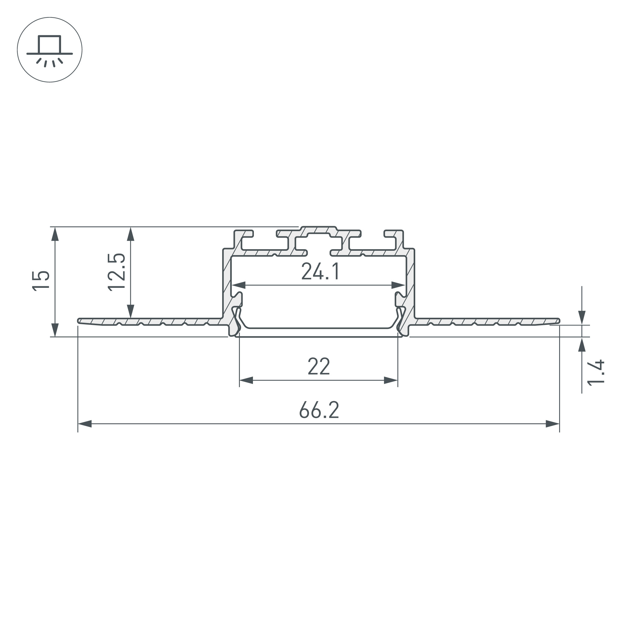 Встраиваемый профиль со скрытым фланцем под строительную отделку из алюминия для установки в гипсокартон толщиной 12,5 мм для основного освещения и контурной подсветки. Габаритные размеры профиля составляют 2000 мм в длину, 66,2 мм в ширину и 15 мм в высоту. Площадка для установки светодиодных лент позволяет использовать ленту шириной до 24 мм и мощностью до 19,2 Вт/м. Это обеспечивает гибкость в выборе светодиодных лент и создает потрясающие световые решения. Экраны, заглушки и другие аксессуары не включены в комплект и приобретаются отдельно. Цена указана за 1 метр профиля. Отличное решение для создания современных световых проектов.