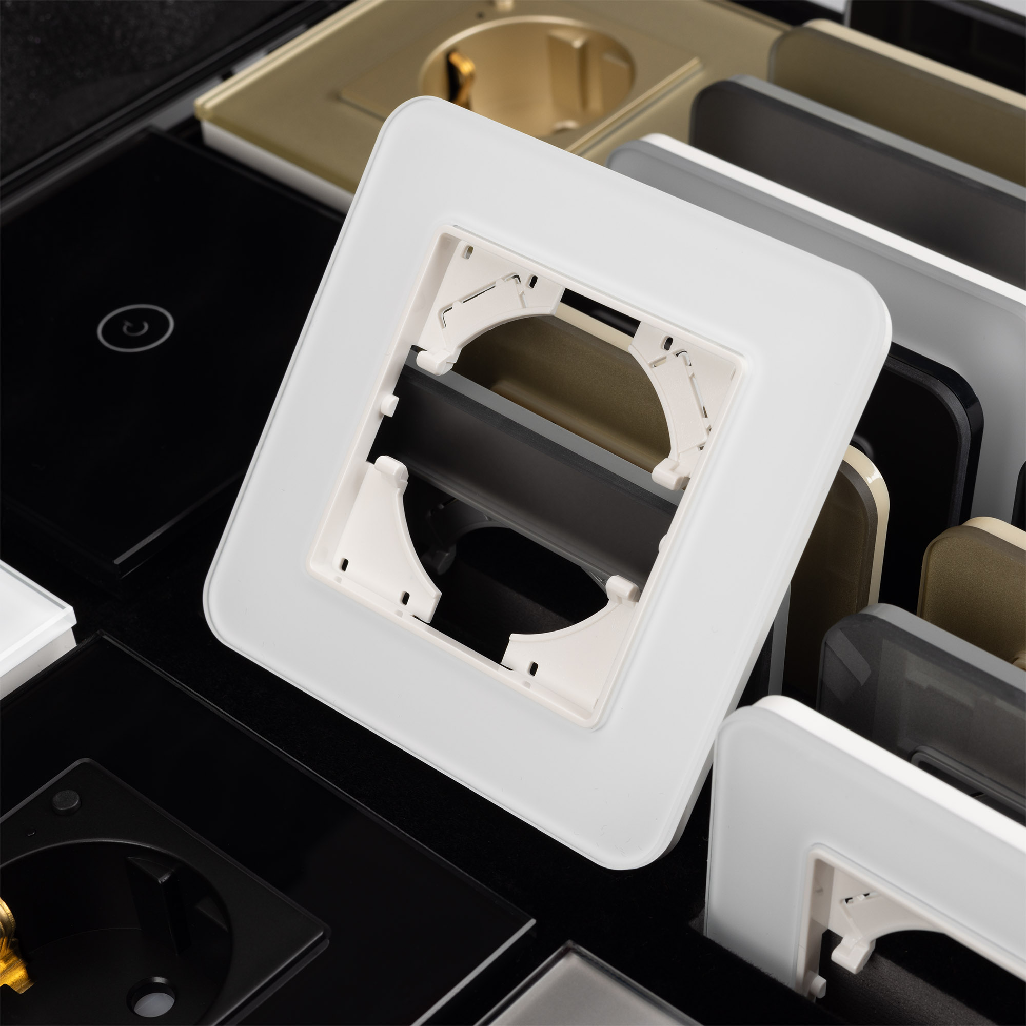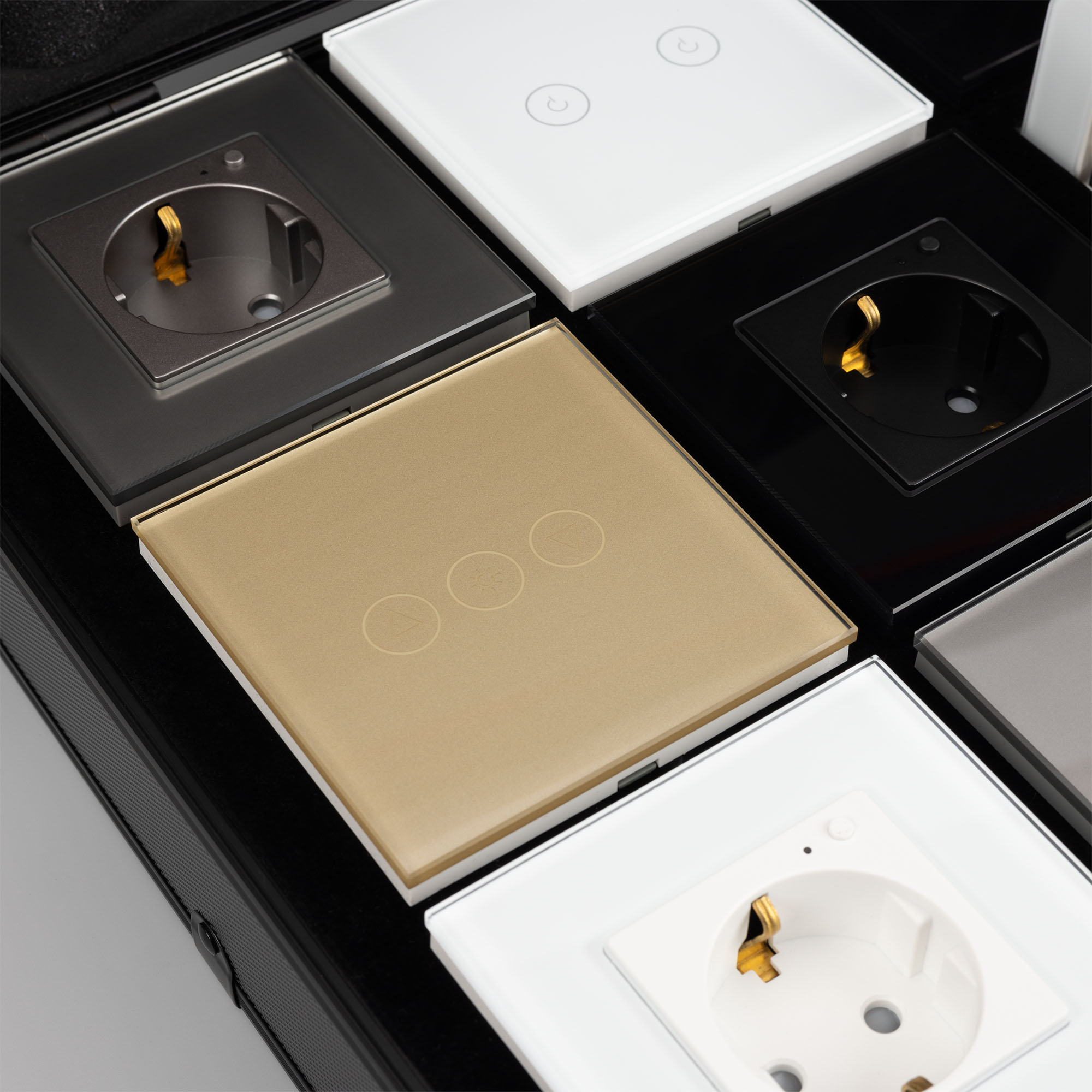 Демо-кейс с наполнением рамок серии OMALI и готовые решения умных устройств одноименной серии. Демо-кейс содержит: Рамки серии OMALI в цветах белый, черный, золотой и серебристый (серый). Поверхность рамок имеет глянцевое и Soft-Touch покрытие; Выключатель сенсорный OMALI на три клавиши в белом цвете - арт. 050042 Розетка OMALI с Zigbee управлением в белом цвете - арт. 050215 Светорегулятор сенсорный OMALI на три клавиши в золотом цвете - арт. 050064 Розетка OMALI с Zigbee управлением в золотом цвете - арт. 050218 Розетка OMALI с Zigbee управлением в серебристом(сером) цвете - арт. 050101 Выключатель сенсорный OMALI на три клавиши в серебристом(сером) цвете - арт. 050047 Выключатель сенсорный OMALI на одну клавишу в черном цвете - арт. 050033 Розетка OMALI с Zigbee управлением в черно цвете - арт. 050216 Умные устройства серии OMALI являются готовым решением, которое не требует дополнительной комплектации в виде рамки. Рамки представленные в данном демо-кейсе сочетаются с механизмами одноименных серий.