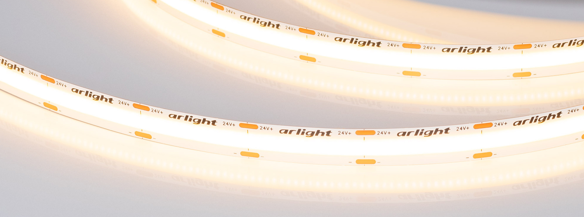 Характеристики - Лента COB-X576-10mm 24V Warm2700 (15 W/m, IP20, 5m) (Arlight, высок.эфф.150 лм/Вт)