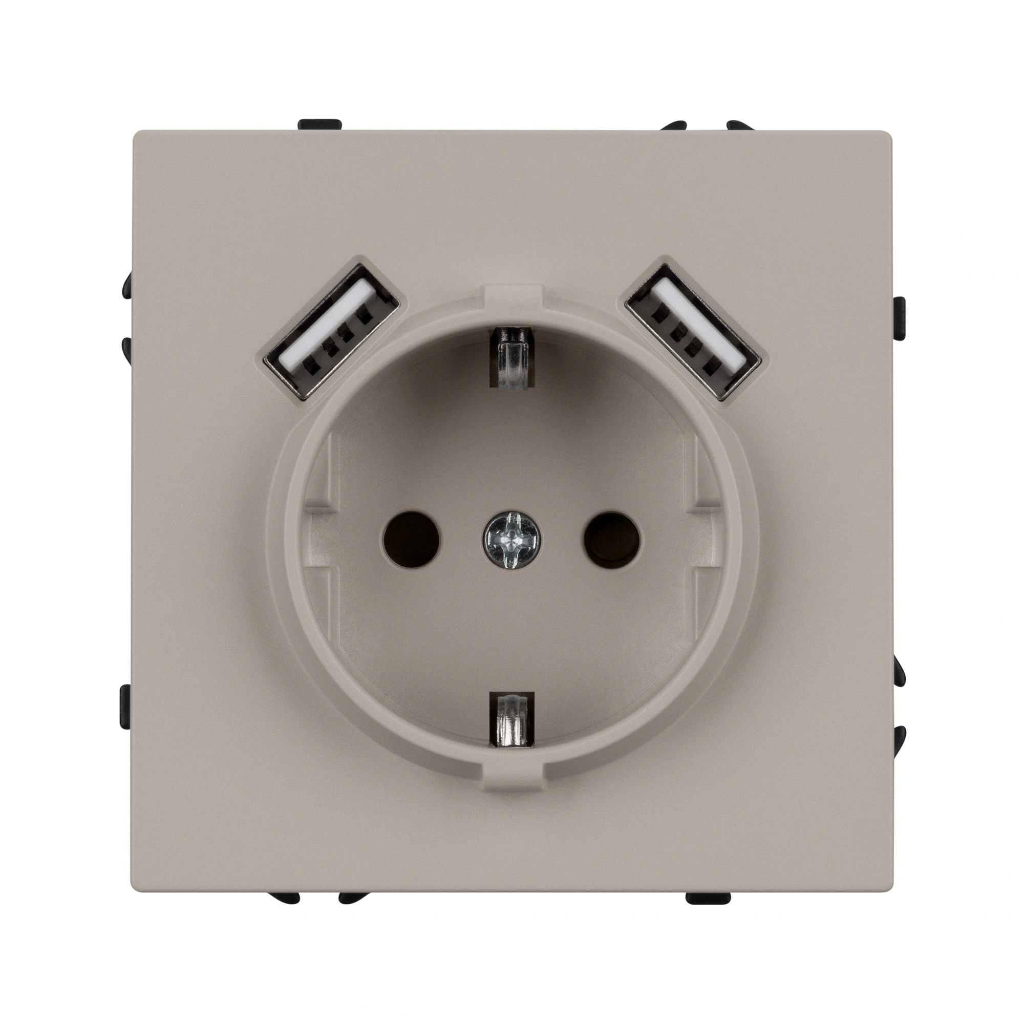Строгие геометрические линии гармонично сочетаются с функциональностью продуманных механизмов, создавая идеальное решение для дизайн-проектов, где важны как эстетика, так и практичность. Механизм розетки с USB зарядкой, совместимый с рамками серии NOBE, создает утонченный минималистичный вид. Наличие двух USB Type A портов позволяет существенно сократить количество используемых розеточных постов под евровилку, сохраняя единую стилистику интерьера всего современного дизайн-проекта. Видимая часть механизма выполнена из высококачественного пластика цвета кашемир и имеет Soft-Touch покрытие, что придает изделию приятные тактильные ощущения и стильный внешний вид. Розетка оснащена заземляющими контактами и защитными шторками, обеспечивая надежное и безопасное подключение электроприборов. Контактная часть присоединяется при помощи винтовых зажимов, позволяя надежно подсоединить механизм выключателя к питающим элементам. А усиленные распорные лапки двойного захвата надежно фиксируют механизм в установочном подрозетнике круглого сечения диаметром от 60мм. Суппорт окрашен в черный матовый цвет под основу механизма и выполнен из металла толщиной 1,5мм, что обеспечивает безопасность и уверенность в установке. На каждой стороне суппорта размещены фиксирующие элементы, позволяющие комбинировать механизмы в системы до 5шт как горизонтально, так и вертикально.