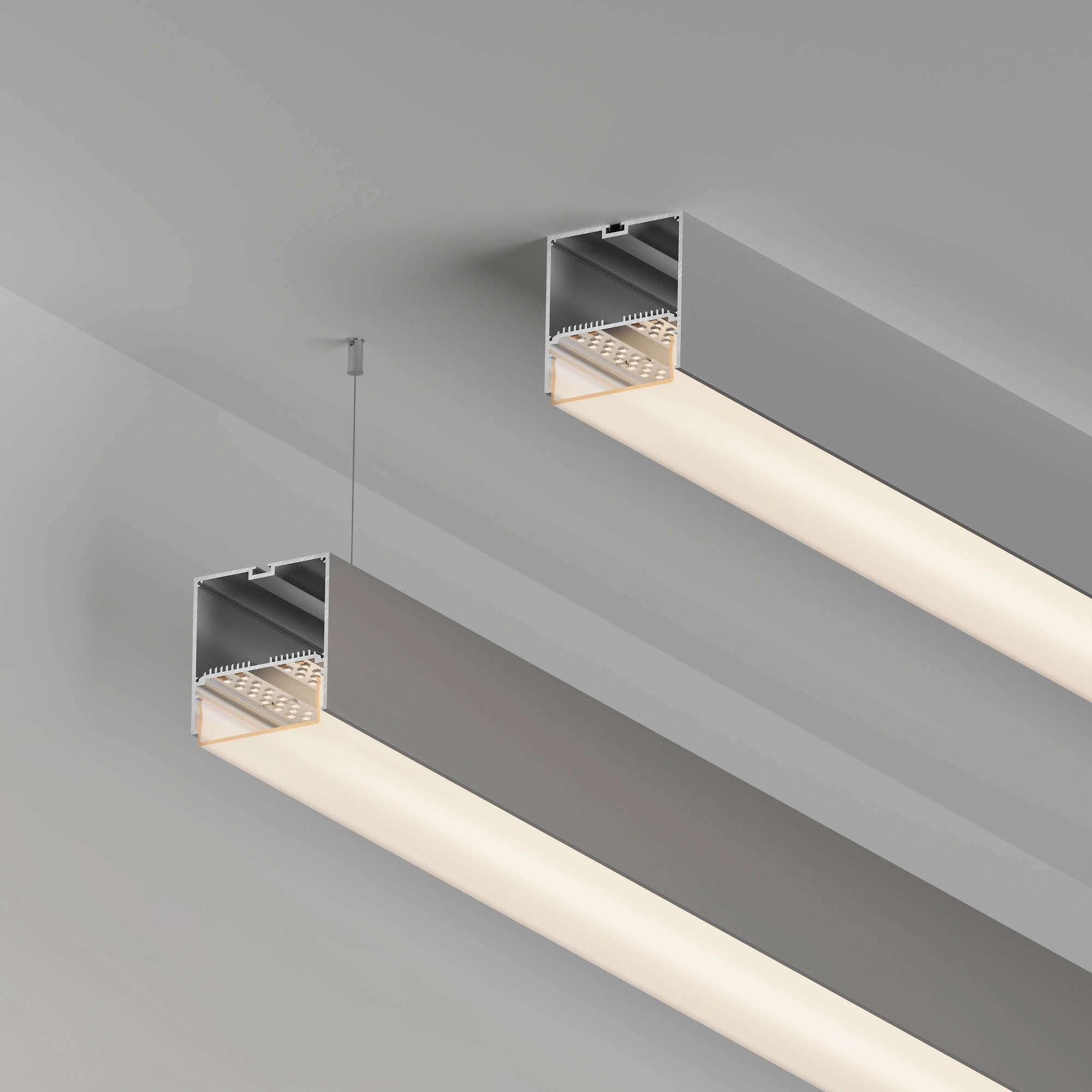 Подвесной/накладной профиль из анодированного алюминия для основной и контурной подсветки помещений. Габаритные размеры профиля составляют 2000 мм в длину, 74 мм в ширину и 77 мм в высоту. Площадка для установки светодиодных лент позволяет использовать ленту шириной до 60 мм и мощностью до 79,2 Вт/м. Это обеспечивает гибкость в выборе светодиодных лент и создает потрясающие световые решения. Монтаж осуществляется накладным либо подвесным способом. Экраны, заглушки и другие аксессуары не включены в комплект и приобретаются отдельно. Цена указана за 1 метр профиля. Отличное решение для создания современных световых проектов.