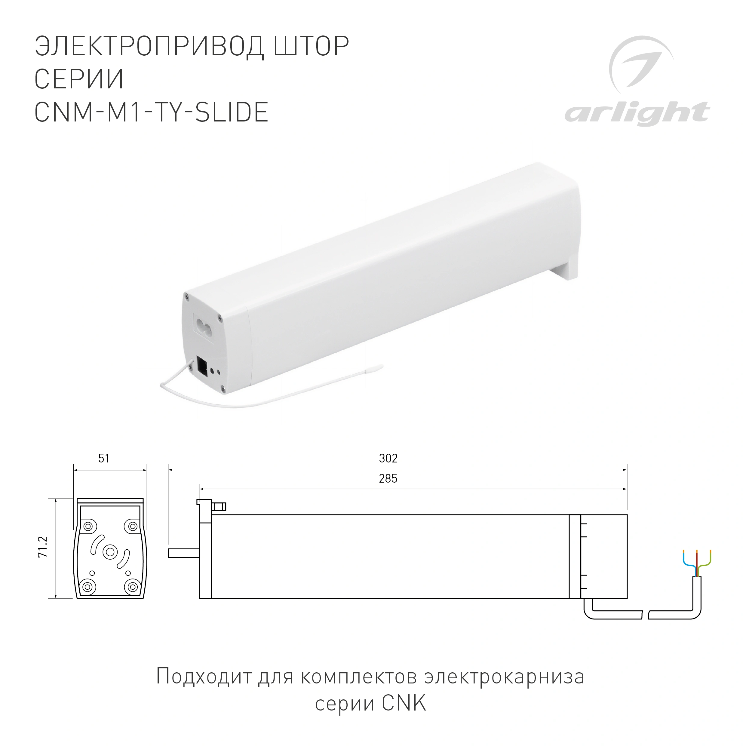 Электропривод для управления комплектами карнизов серии CNK, а также для сбора электрокарниза из комплектующих серии CNT. Управление по по WI-FI, 2.4ГГц, Bluetooth, пультом и "сухими" контактами.