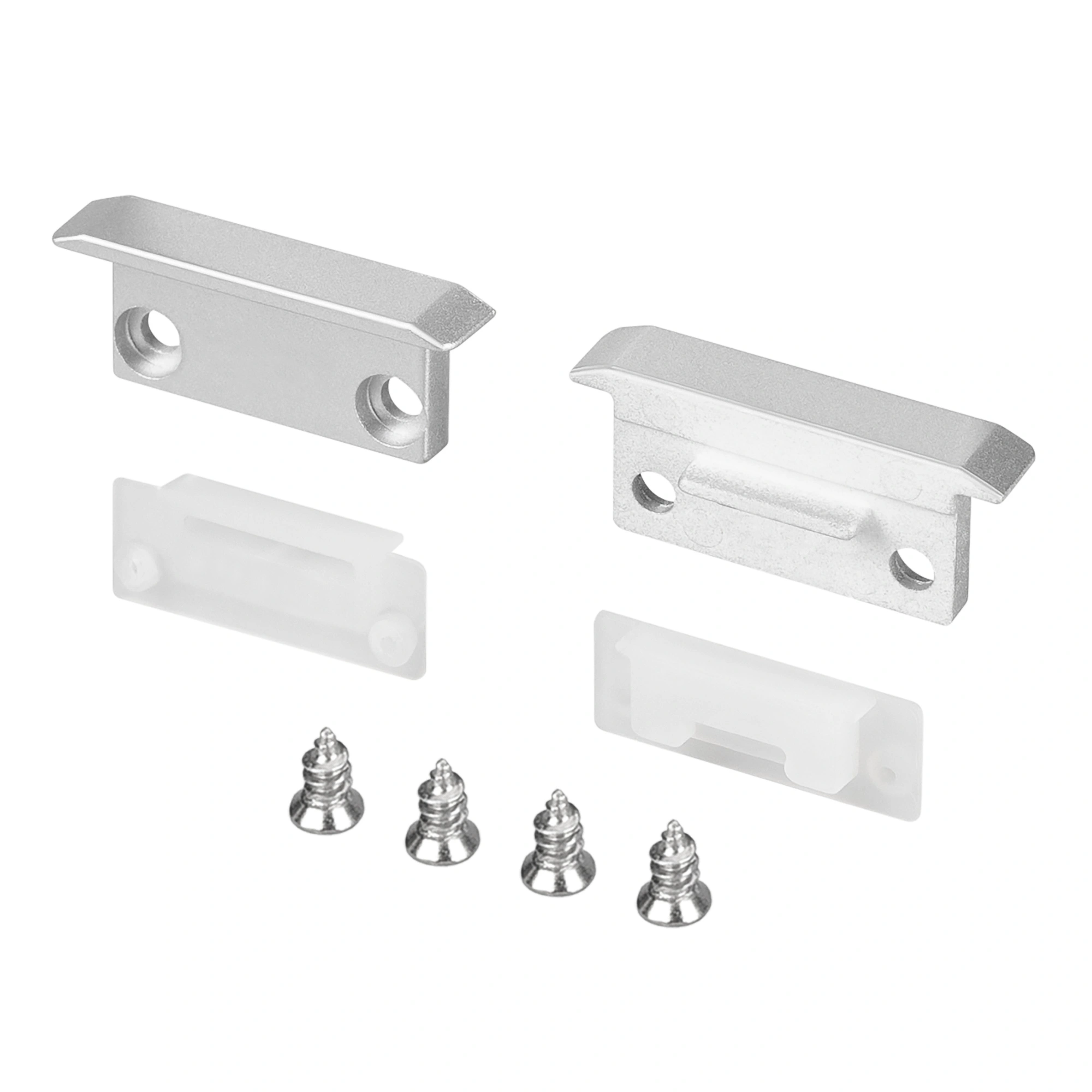 Пара пластиковых глухих заглушек с силиконовыми прокладками для герметизации профиля FLOOR27-H11-F. Цвет - серебристый. В комплекте: заглушка без отверстия - 2 шт., силиконовая прокладка - 2 шт., винт - 4 шт. Цена за комплект.