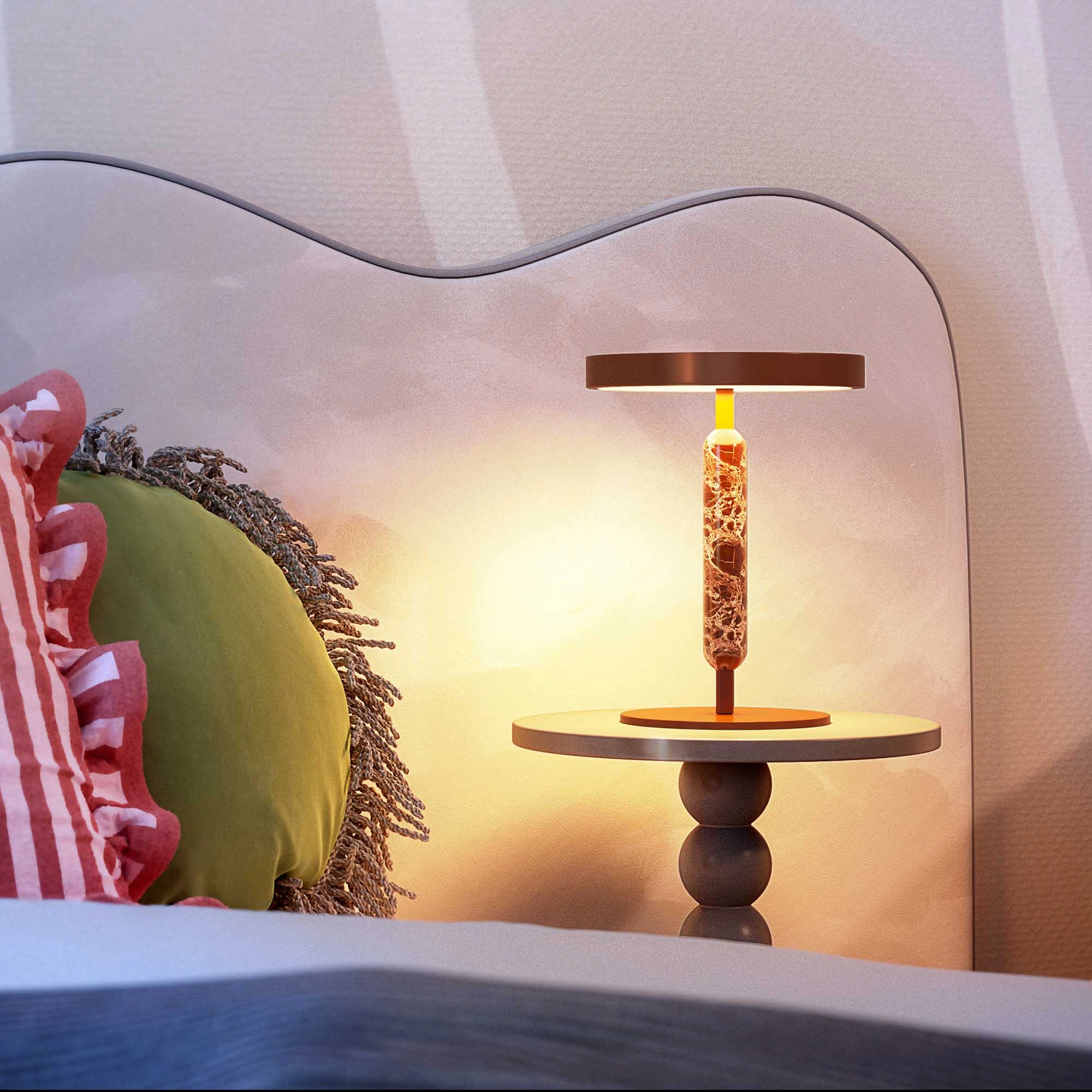 Настольный светильник ALYSS мощностью 5 Вт, с изменяемой цветовой температурой 2700/3200/4000К предназначен для местного декоративного освещения в жилых или коммерческих помещениях. Светильник с широким углом излучения 110 градусов и декоративной вставкой из натурального мрамора оригинально дополнит интерьеры кухни-гостиной или зала кафе, ресторанов. Индекс CRI>92 отвечает за отличное восприятие и передачу цветовых оттенков. Низкая пульсация обеспечивает комфортное освещение без мерцания. Сенсорная кнопка на плафоне позволяет настроить желаемую яркость и цветовую температуру. Пылевлагозащита на уровне IP20 позволяет применять модель внутри помещений, где нет контакта с водой или другими жидкостями. За счет сетевого адаптера, входящего в комплект, светильник быстро подключается к сети 230В.
