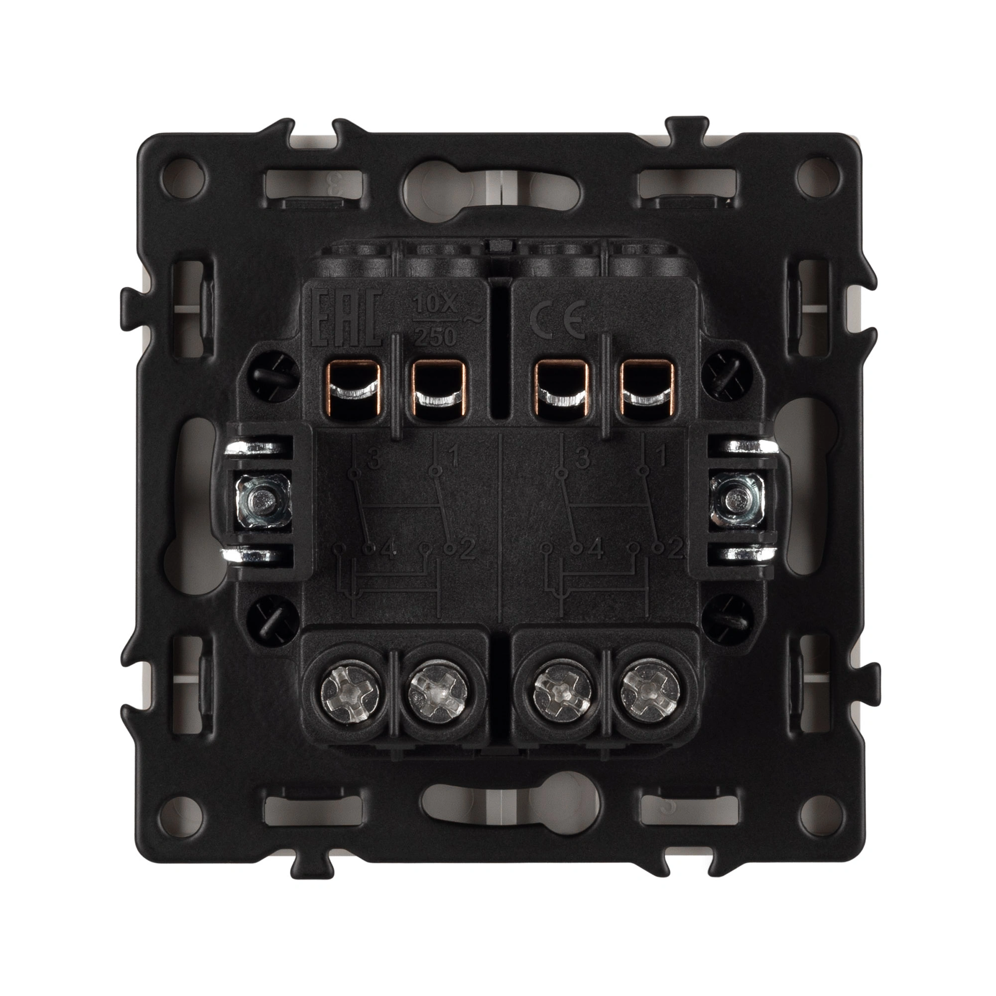Строгие геометрические линии гармонично сочетаются с функциональностью продуманных механизмов, создавая идеальное решение для дизайн-проектов, где важны как эстетика, так и практичность. Механизм выключателя света совместим с рамками серии NOBE, создает утонченный минималистичный вид. Скрытый тип монтажа позволяет гармонично встроить в интерьер любого современного дизайн-проекта. Видимая часть механизма выполнена из высококачественного пластика цвета никель и имеет Soft-Touch покрытие, что придает изделию приятные тактильные ощущения и стильный внешний вид. Контактная часть присоединяется при помощи винтовых зажимов, позволяя быстро и легко подсоединить механизм выключателя к питающим элементам. А усиленные распорные лапки двойного захвата надежно фиксируют механизм в установочном подрозетнике круглого сечения диаметром 60мм. Суппорт окрашен в черный матовый цвет под основу механизма и выполнен из металла толщиной 1,5мм, что обеспечивает безопасность и уверенность в установке. На каждой стороне суппорта размещены фиксирующие элементы, позволяющие комбинировать механизмы в системы до 5 шт как горизонтально, так и вертикально.