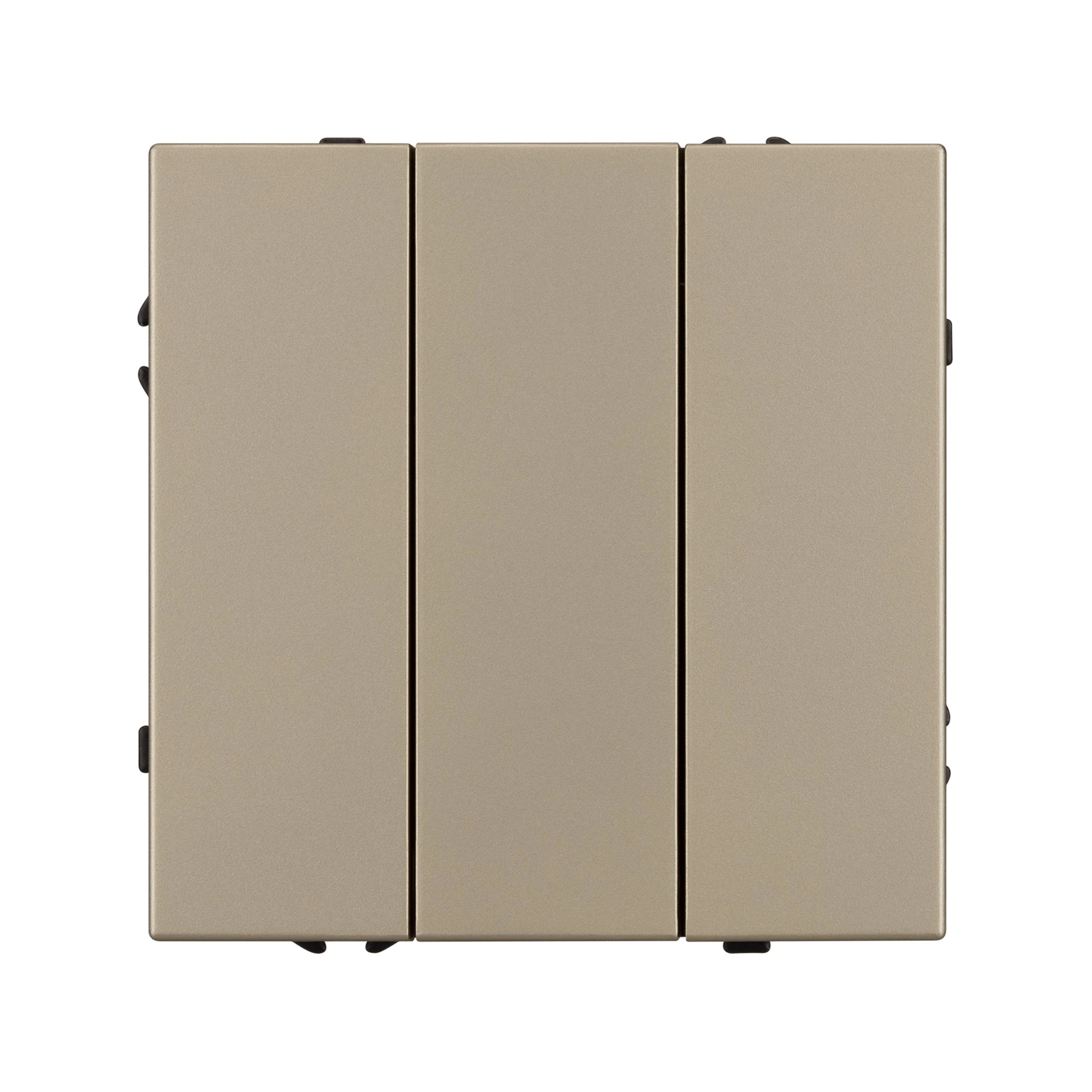 Строгие геометрические линии гармонично сочетаются с функциональностью продуманных механизмов, создавая идеальное решение для дизайн-проектов, где важны как эстетика, так и практичность. Механизм выключателя света совместим с рамками серии NOBE, создает утонченный минималистичный вид. Скрытый тип монтажа позволяет гармонично встроить в интерьер любого современного дизайн-проекта. Видимая часть механизма выполнена из высококачественного пластика цвета золотой песок и имеет Soft-Touch покрытие, что придает изделию приятные тактильные ощущения и стильный внешний вид. Соединение посредством быстрозажимных контактов, позволяет надежно подсоединить механизм выключателя к питающим элементам, минимизируя затраченное время на монтаж. А усиленные распорные лапки двойного захвата надежно фиксируют механизм в установочном подрозетнике круглого сечения диаметром 60мм. Суппорт окрашен в черный матовый цвет под основу механизма и выполнен из металла толщиной 1,5мм, что обеспечивает безопасность и уверенность в установке. На каждой стороне суппорта размещены фиксирующие элементы, позволяющие комбинировать механизмы в системы до 5 шт как горизонтально, так и вертикально.