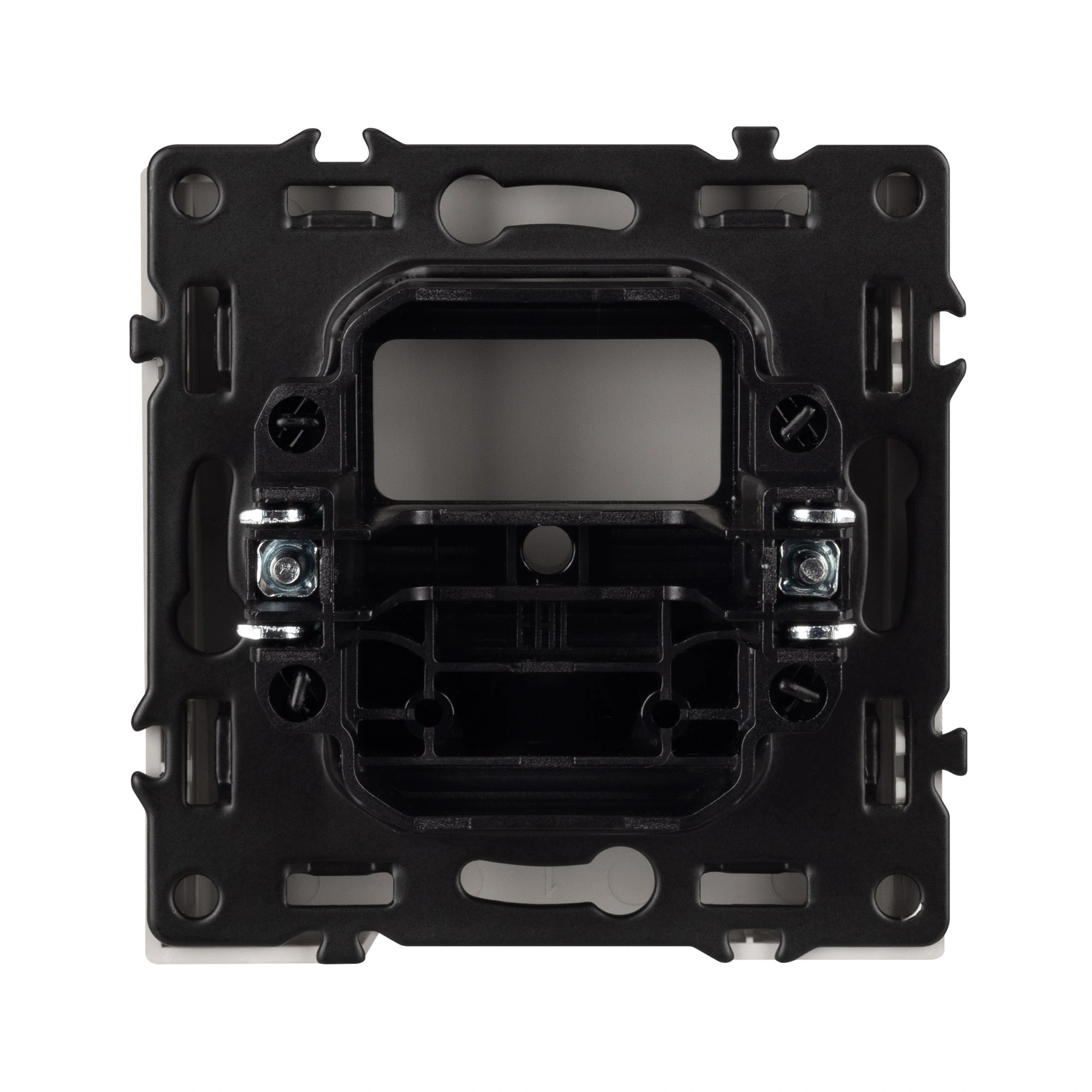 Строгие геометрические линии гармонично сочетаются с функциональностью продуманных механизмов, создавая идеальное решение для дизайн-проектов, где важны как эстетика, так и практичность. Механизм вывода кабеля совместим с рамками серии NOBE, создает утонченный минималистичный вид. Скрытый тип монтажа позволяет гармонично встроить в интерьер любого современного дизайн-проекта. Видимая часть механизма выполнена из высококачественного пластика цвета кашемир и имеет Soft-Touch покрытие, что придает изделию приятные тактильные ощущения и стильный внешний вид. Выводной кабель фиксируется винтовым зажимом, расположенным на тыльной стороне механизма. А усиленные распорные лапки двойного захвата надежно фиксируют механизм в установочном подрозетнике круглого сечения диаметром 60мм. Суппорт окрашен в черный матовый цвет под основу механизма и выполнен из металла толщиной 1,5мм, что обеспечивает безопасность и уверенность в установке. На каждой стороне суппорта размещены фиксирующие элементы, позволяющие комбинировать механизмы в системы до 5шт как горизонтально, так и вертикально.