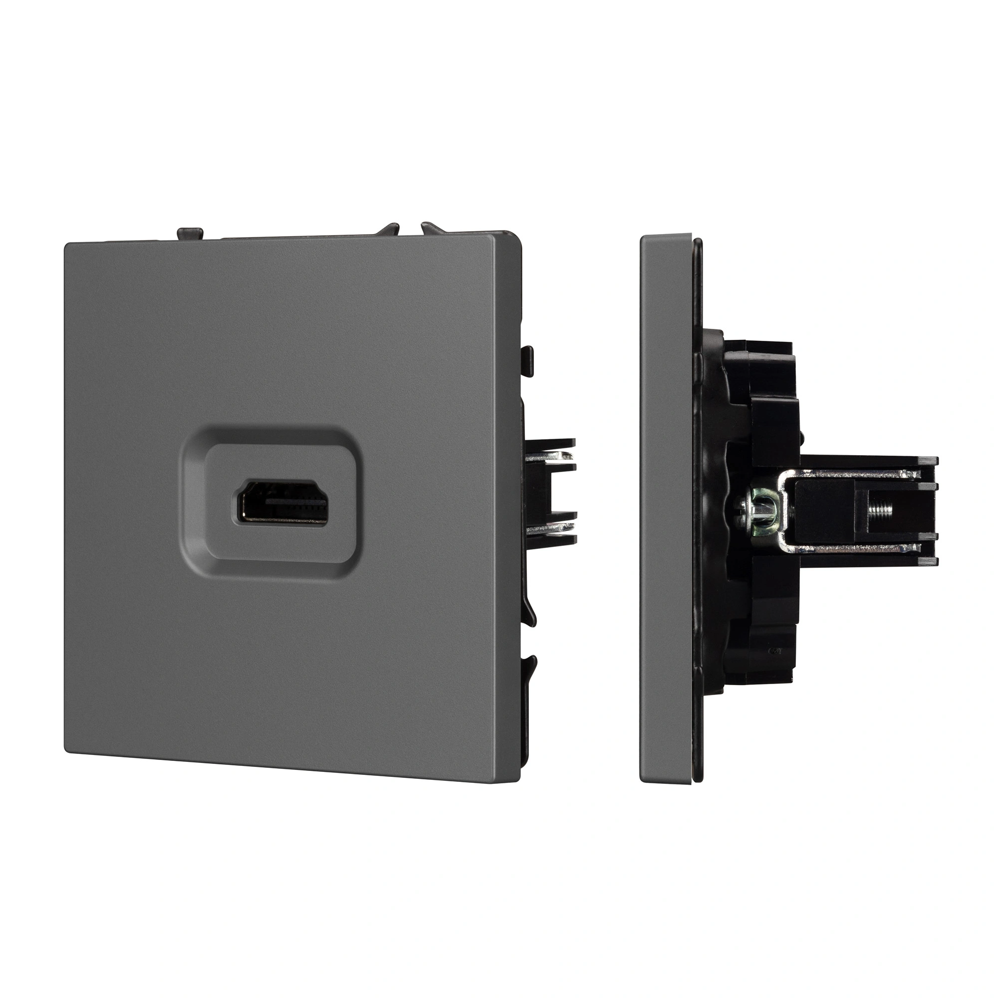 Строгие геометрические линии гармонично сочетаются с функциональностью продуманных механизмов, создавая идеальное решение для дизайн-проектов, где важны как эстетика, так и практичность. Механизм HDMI розетки совместим с рамками серии NOBE, создает утонченный минималистичный вид. Скрытый тип монтажа позволяет гармонично встроить в интерьер любого современного дизайн-проекта. Видимая часть механизма выполнена из высококачественного пластика цвета серый базальт и имеет Soft-Touch покрытие, что придает изделию приятные тактильные ощущения и стильный внешний вид. Выходной порт HDMI (Female). А усиленные распорные лапки двойного захвата надежно фиксируют механизм в установочном подрозетнике круглого сечения диаметром 60мм. Суппорт окрашен в черный матовый цвет под основу механизма и выполнен из металла толщиной 1,5мм, что обеспечивает безопасность и уверенность в установке. На каждой стороне суппорта размещены фиксирующие элементы, позволяющие комбинировать механизмы в системы до 5шт как горизонтально, так и вертикально.