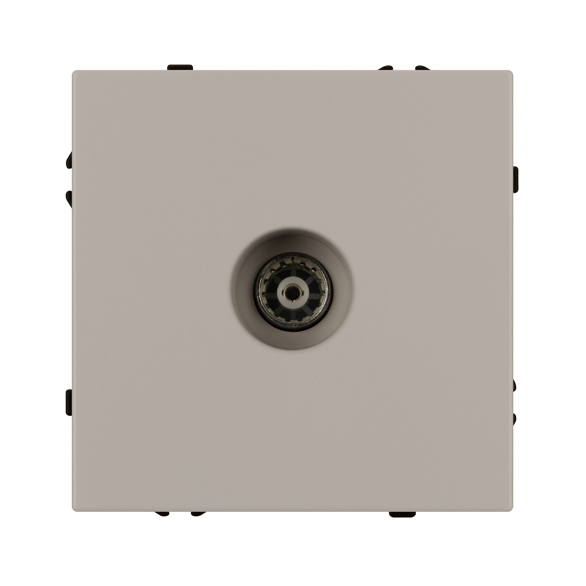 Строгие геометрические линии гармонично сочетаются с функциональностью продуманных механизмов, создавая идеальное решение для дизайн-проектов, где важны как эстетика, так и практичность. Механизм ТВ-розетки совместим с рамками серии NOBE, создает утонченный минималистичный вид. Скрытый тип монтажа позволяет гармонично встроить в интерьер любого современного дизайн-проекта. Видимая часть выполнена из высококачественного пластика цвета кашемир и имеет Soft-Touch покрытие, что придает изделию приятные тактильные ощущения и стильный внешний вид. Механизм ТВ-розетки предназначена для подключения кабельного телевидения, путем подсоединения коаксиального кабеля к винтовому зажиму. Усиленные распорные лапки двойного захвата надежно фиксируют устройство в установочном подрозетнике круглого сечения диаметром 60мм. Суппорт окрашен в черный матовый цвет и выполнен из металла толщиной 1,5мм, что обеспечивает безопасность и уверенность в установке. На каждой стороне суппорта размещены фиксирующие элементы, позволяющие комбинировать механизмы в системы до 5шт как горизонтально, так и вертикально.