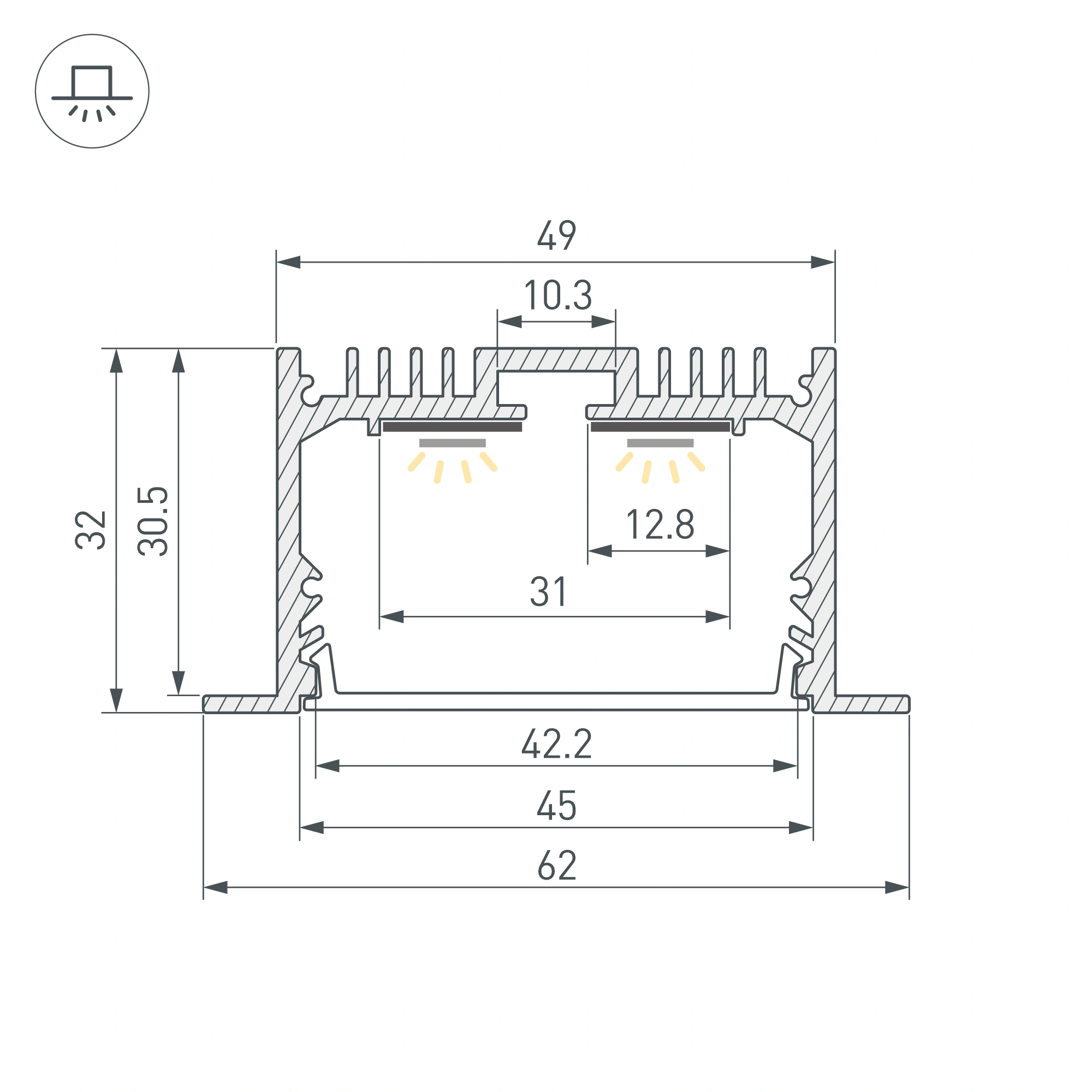 Встраиваемый алюминиевый профиль черного цвета с накладным фланцем для основной и контурной подсветки помещений. Габаритные размеры профиля составляют 2000 мм в длину, 62 мм в ширину и 32 мм в высоту, паз для установки 49 мм. Площадка для установки светодиодных лент позволяет использовать ленту шириной до 31мм и мощностью до 46,4 Вт/м. Это обеспечивает гибкость в выборе светодиодных лент и создает потрясающие световые решения. Экраны, заглушки и другие аксессуары не включены в комплект и приобретаются отдельно. Цена указана за 1 метр профиля. Отличное решение для создания современных световых проектов.