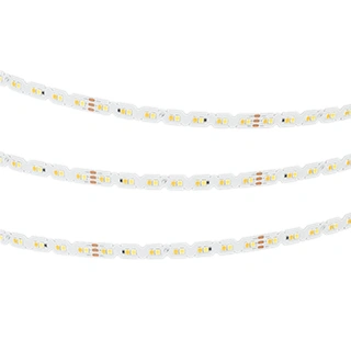 Светодиодная лента RZ серии A140 с фигурной платой в виде волны, позволяющей изгибать ленту на плоскости. Изменяемый цвет свечения MIX в диапазоне от холодного белого 6000K до теплого белого, имитирующего цвет пламени свечи 1900K. Управляется любым совместимым MIX-контроллером. Максимальный радиус изгиба на плоскости — 50 мм. Напряжение питания 24 В, светодиоды SMD 2835, 140 шт/м. Лента предназначена для декоративной подсветки рекламных вывесок, букв, витрин. Обязательна установка на профиль.