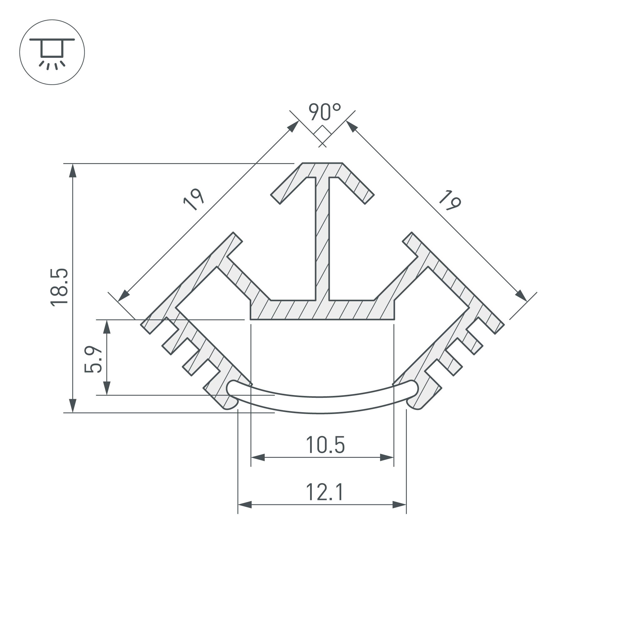 Угловой профиль из анодированного алюминия для подсветки мебели, ниш и других элементов интерьера. Габаритные размеры профиля составляют 2000 мм в длину, 19 мм в ширину и 19 мм в высоту. Площадка для установки светодиодных лент позволяет использовать ленту шириной до 10,5 мм и мощностью до 20 Вт/м. Это обеспечивает гибкость в выборе светодиодных лент и создает потрясающие световые решения. Экраны, заглушки и другие аксессуары не включены в комплект и приобретаются отдельно. Цена указана за 1 метр профиля. Отличное решение для создания современных световых проектов.