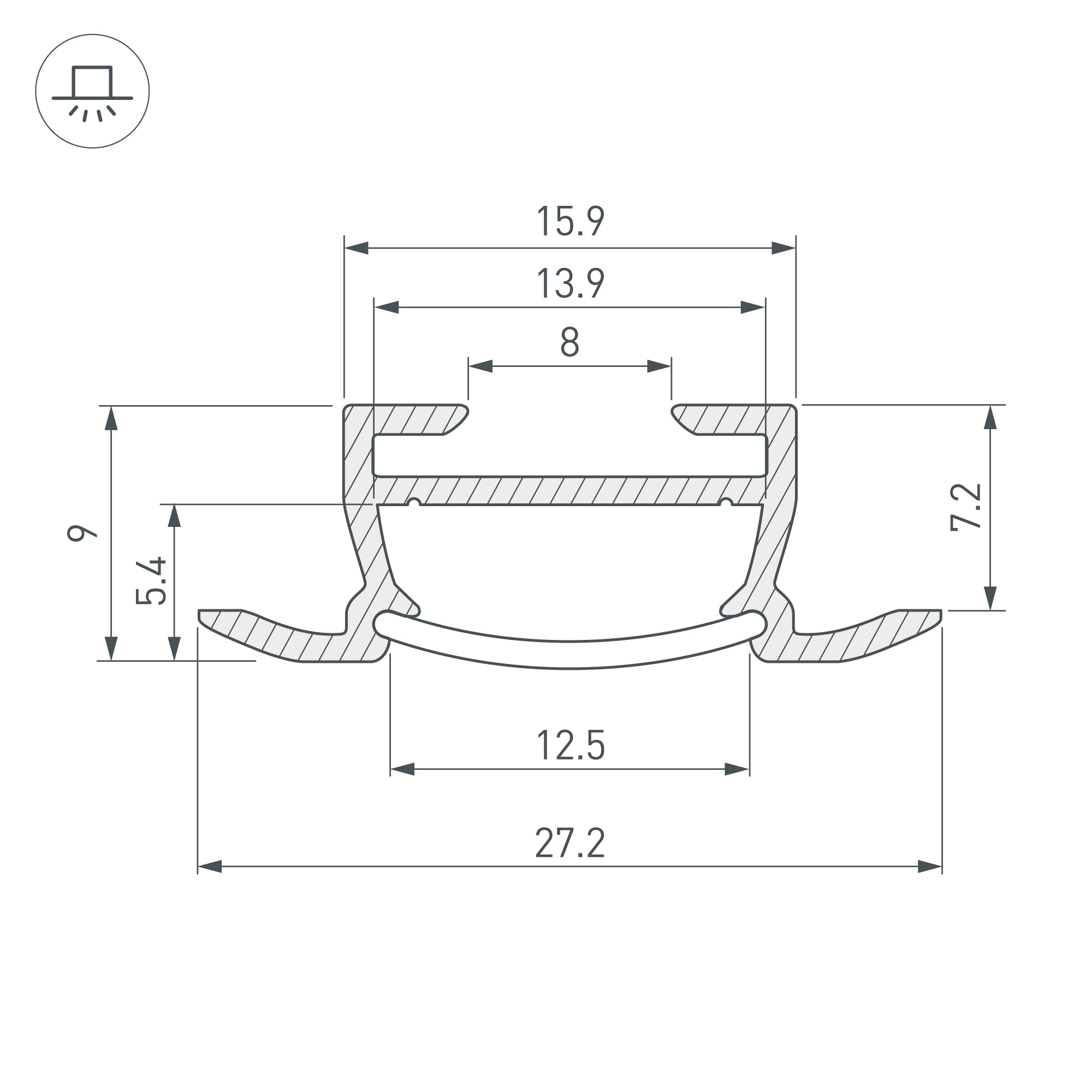 Встраиваемый профиль с накладным фланцем из анодированного алюминия для контурной подсветки. Габаритные размеры профиля составляют 2000 мм в длину, 27,2 мм в ширину и 9 мм в высоту. Площадка для установки светодиодных лент позволяет использовать ленту шириной до 13,9 мм и мощностью до 17 Вт/м. Это обеспечивает гибкость в выборе светодиодных лент и создает потрясающие световые решения. Экраны, заглушки и другие аксессуары не включены в комплект и приобретаются отдельно. Цена указана за 1 метр профиля. Отличное решение для создания современных световых проектов.