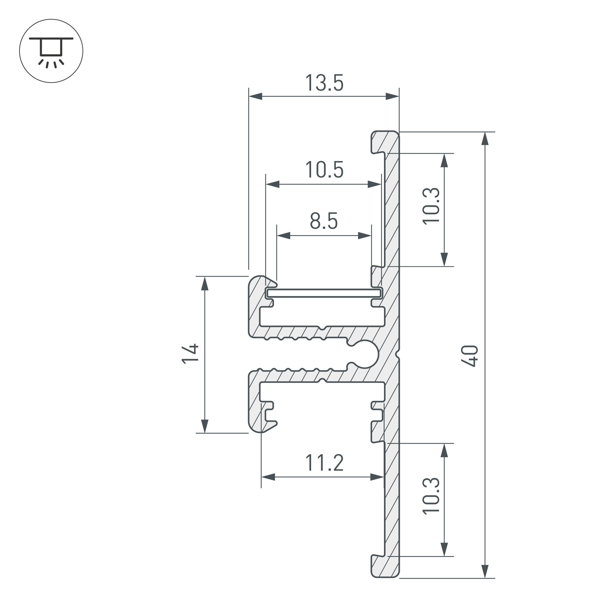 Накладной профиль из анодированного алюминия с двусторонним свечением вверх-вниз для подсветки стен и мебели. Габаритные размеры профиля составляют 2000 мм в длину, 13,5 мм в ширину и 40 мм в высоту. Две основные площадки для установки светодиодных лент позволяют использовать ленты шириной до 11,2 мм и мощностью до 7 Вт/м каждая, две дополнительные площадки позволяют использовать ленты шириной до 10,3 мм и мощностью до 6 Вт/м каждая. Это обеспечивает гибкость в выборе светодиодных лент и создает потрясающие световые решения. Экраны, заглушки и другие аксессуары не включены в комплект и приобретаются отдельно. Цена указана за 1 метр профиля. Отличное решение для создания современных световых проектов.