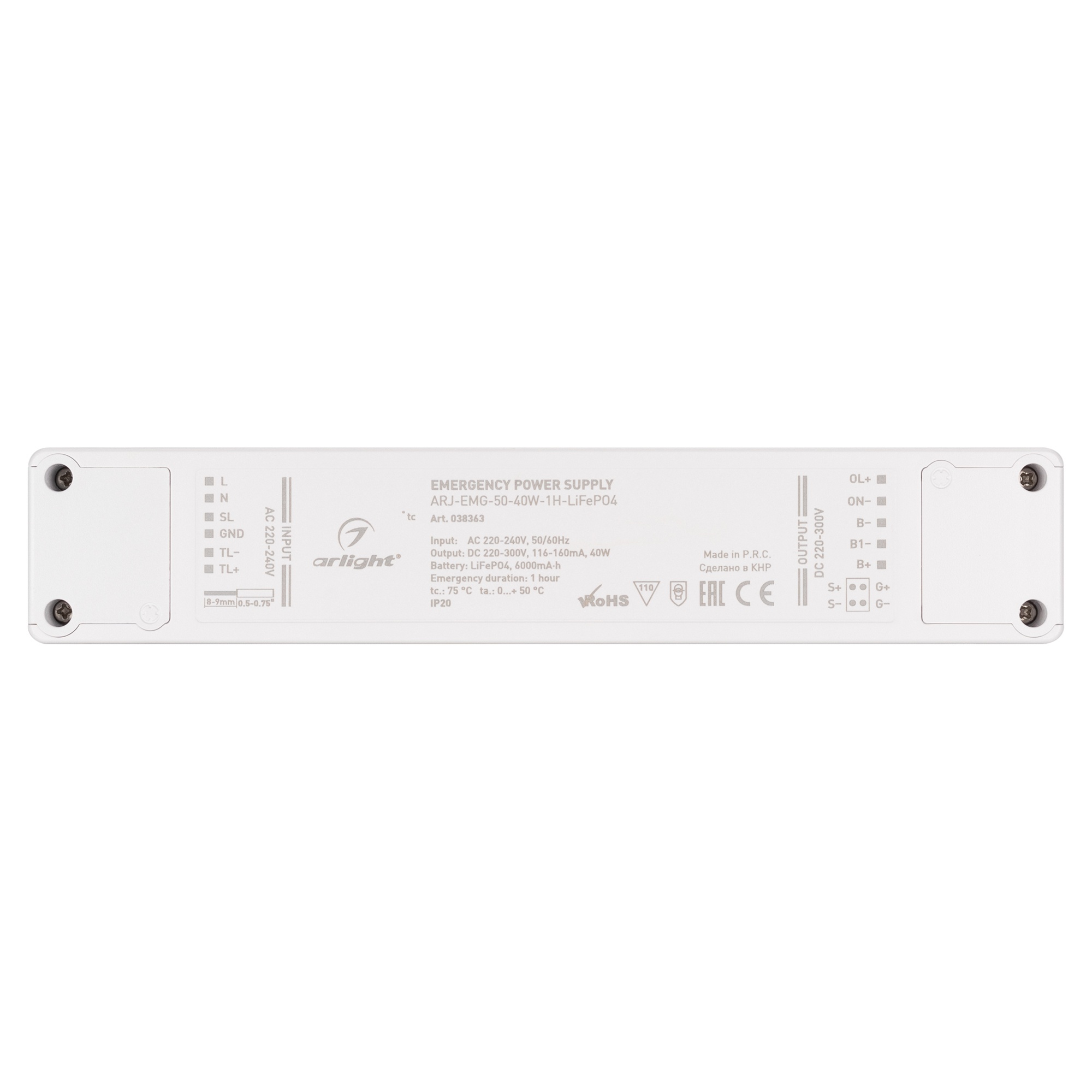 Характеристики - Блок аварийного питания ARJ-EMG-50-40W-1H-LiFePO4 (Arlight, IP20 Пластик, 3 года)