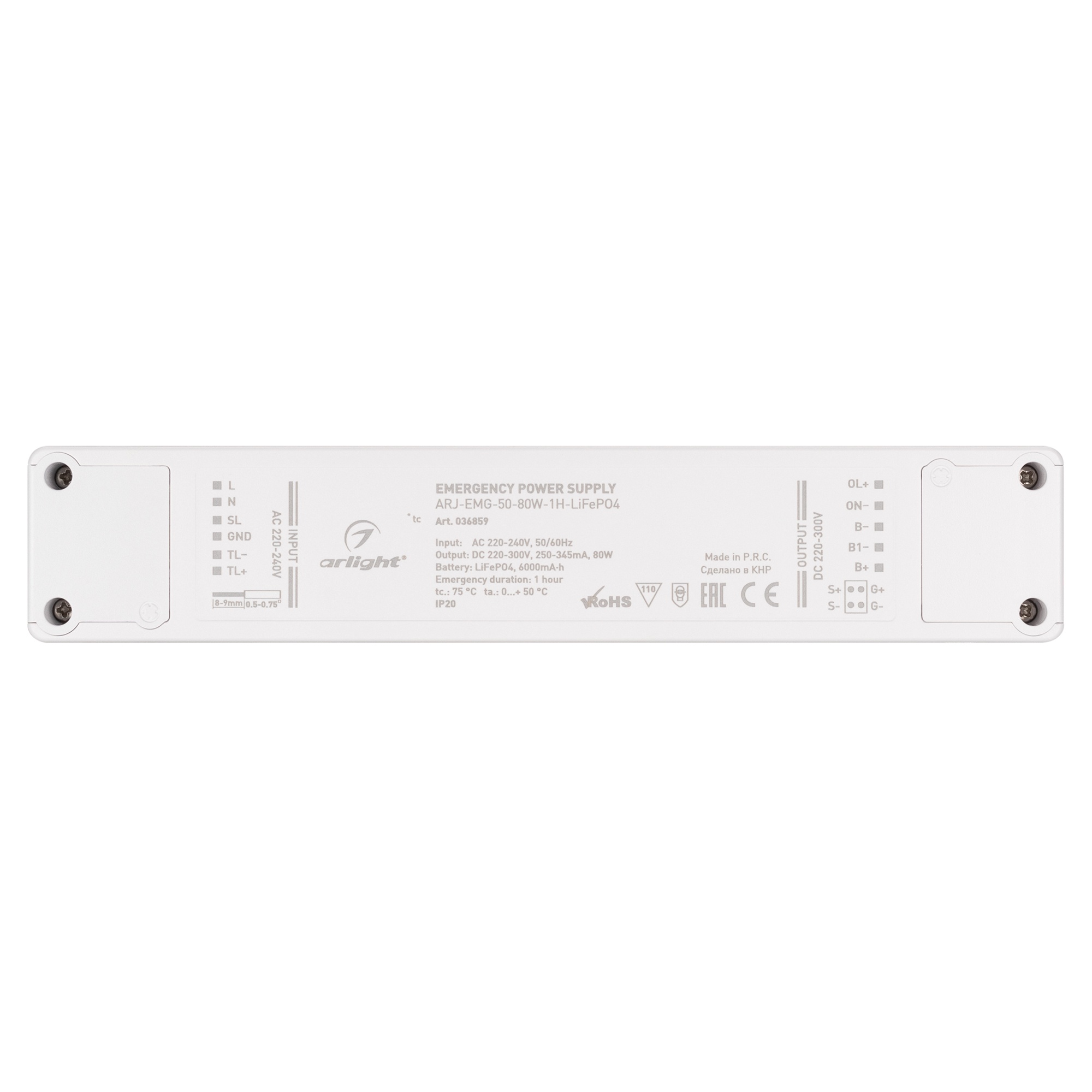 Характеристики - Блок аварийного питания ARJ-EMG-50-80W-1H-LiFePO4 (Arlight, IP20 Пластик, 3 года)