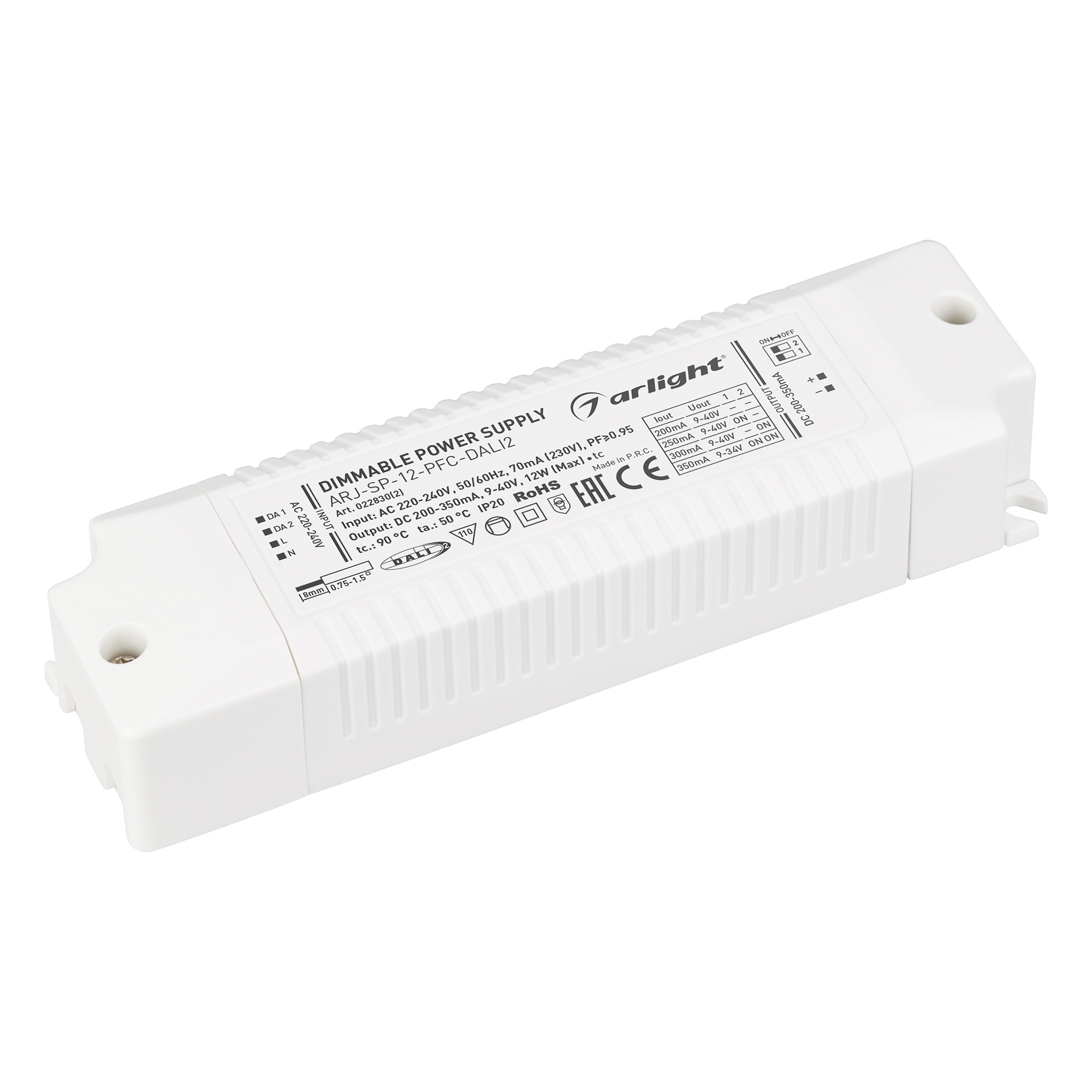 Характеристики - Блок питания ARJ-SP-12-PFC-DALI2 (12W, 200-350mA) (Arlight, IP20 Пластик, 5 лет)