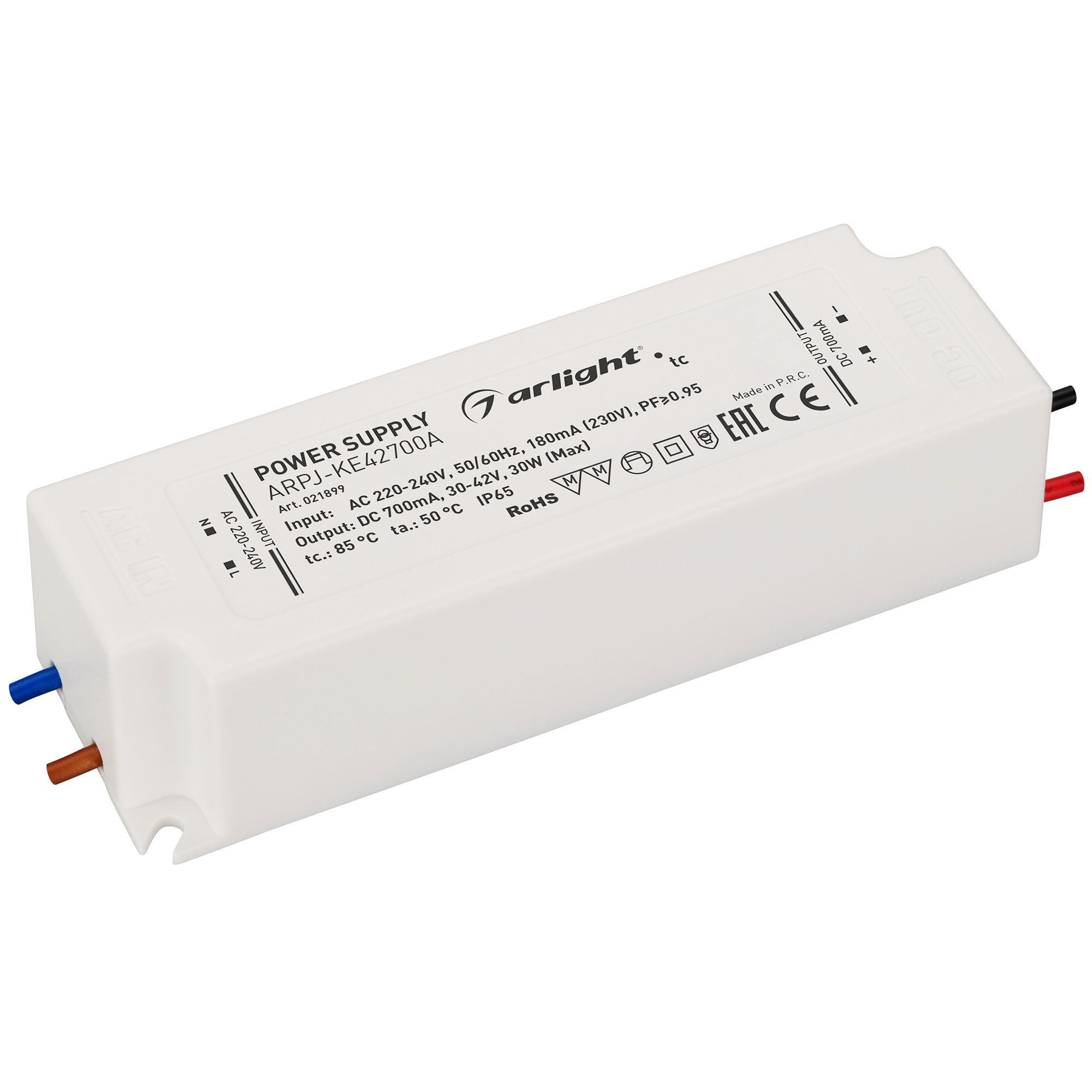 Характеристики - Блок питания ARPJ-KE42700A (30W, 700mA, PFC) (Arlight, IP65 Пластик, 5 лет)