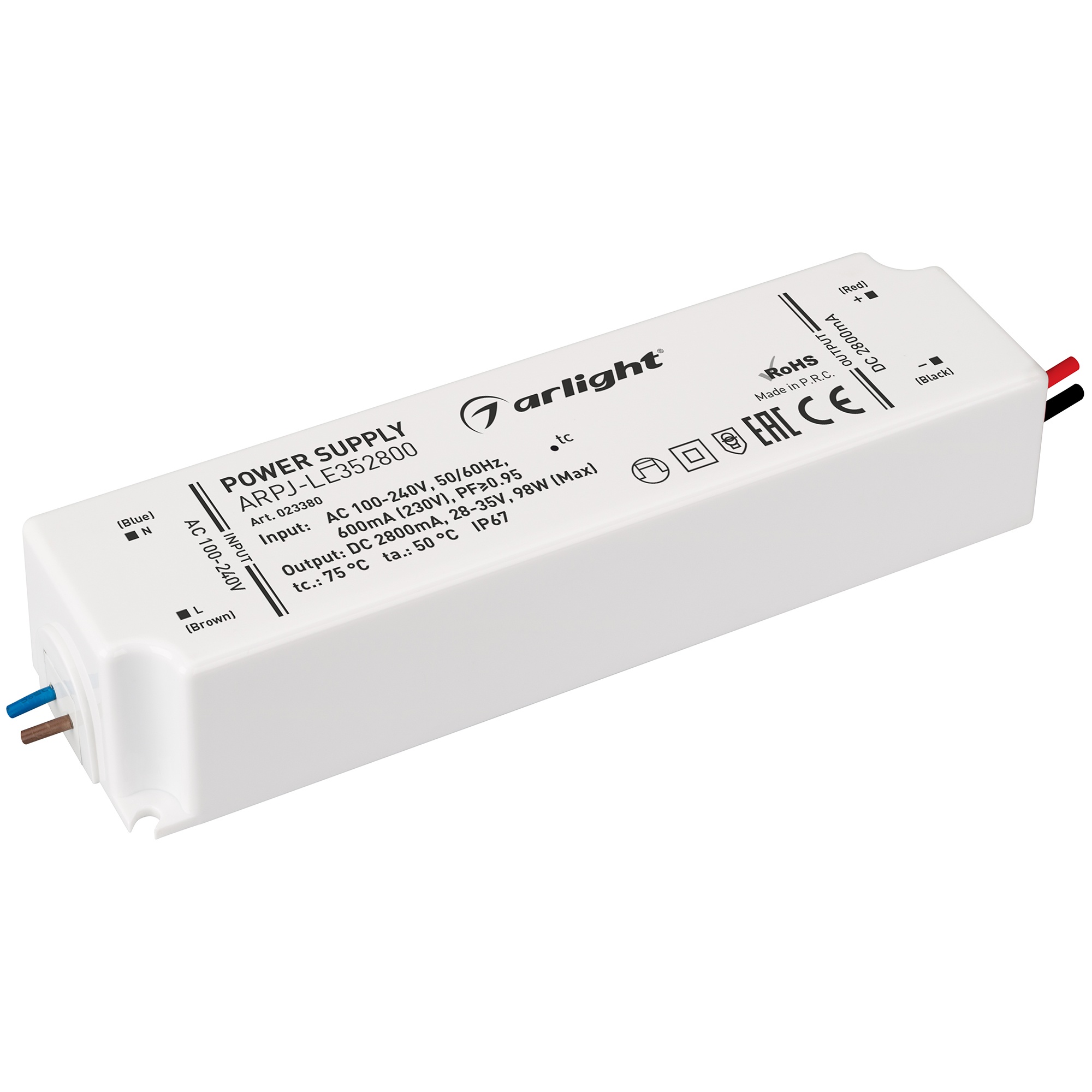 Характеристики - Блок питания ARPJ-LE352800 (98W, 2800mA, PFC) (Arlight, IP67 Пластик, 3 года)