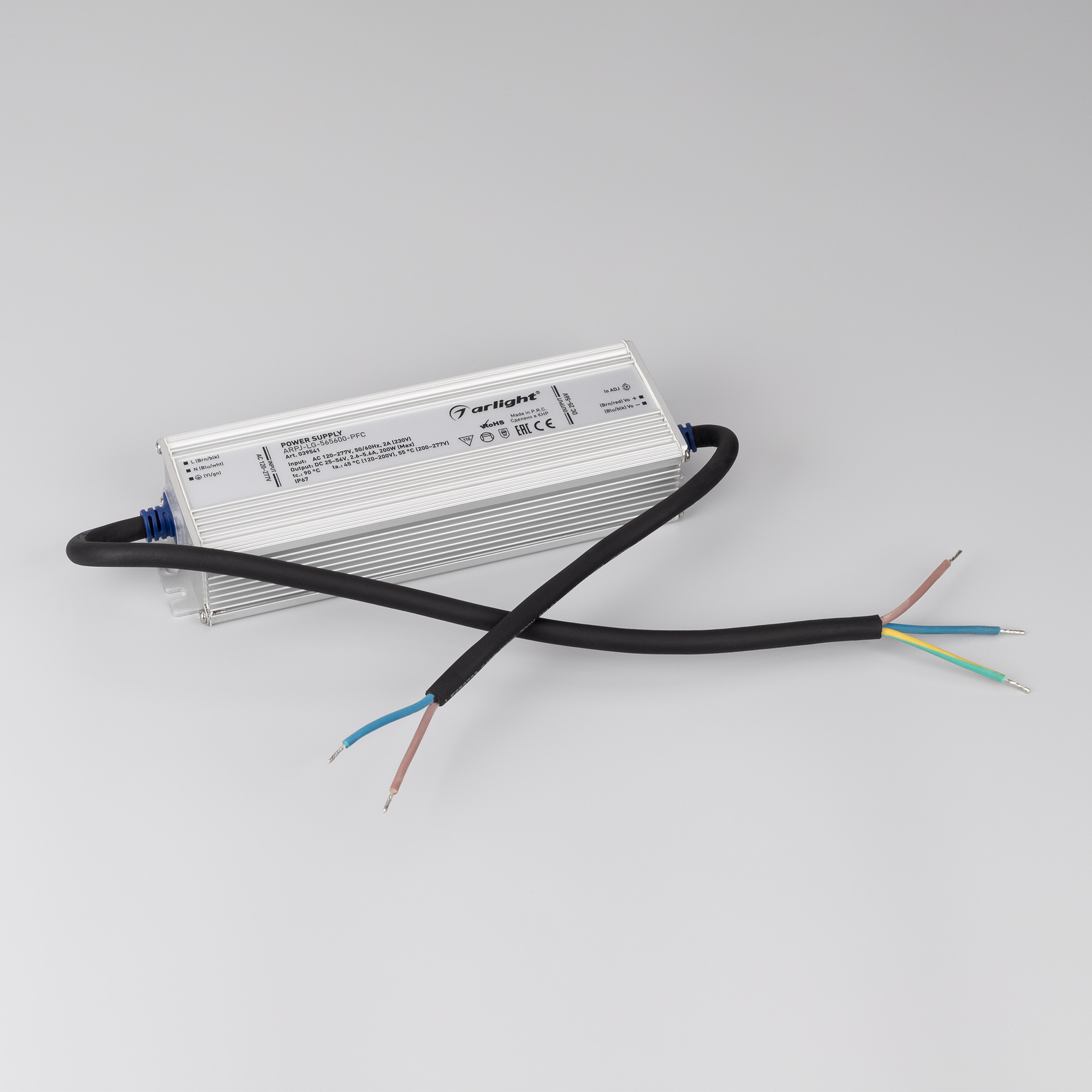 Характеристики - Блок питания ARPJ-LG-565600-PFC (200W, 25-56V, 2.6-5.6A) (Arlight, IP67 Металл, 5 лет)