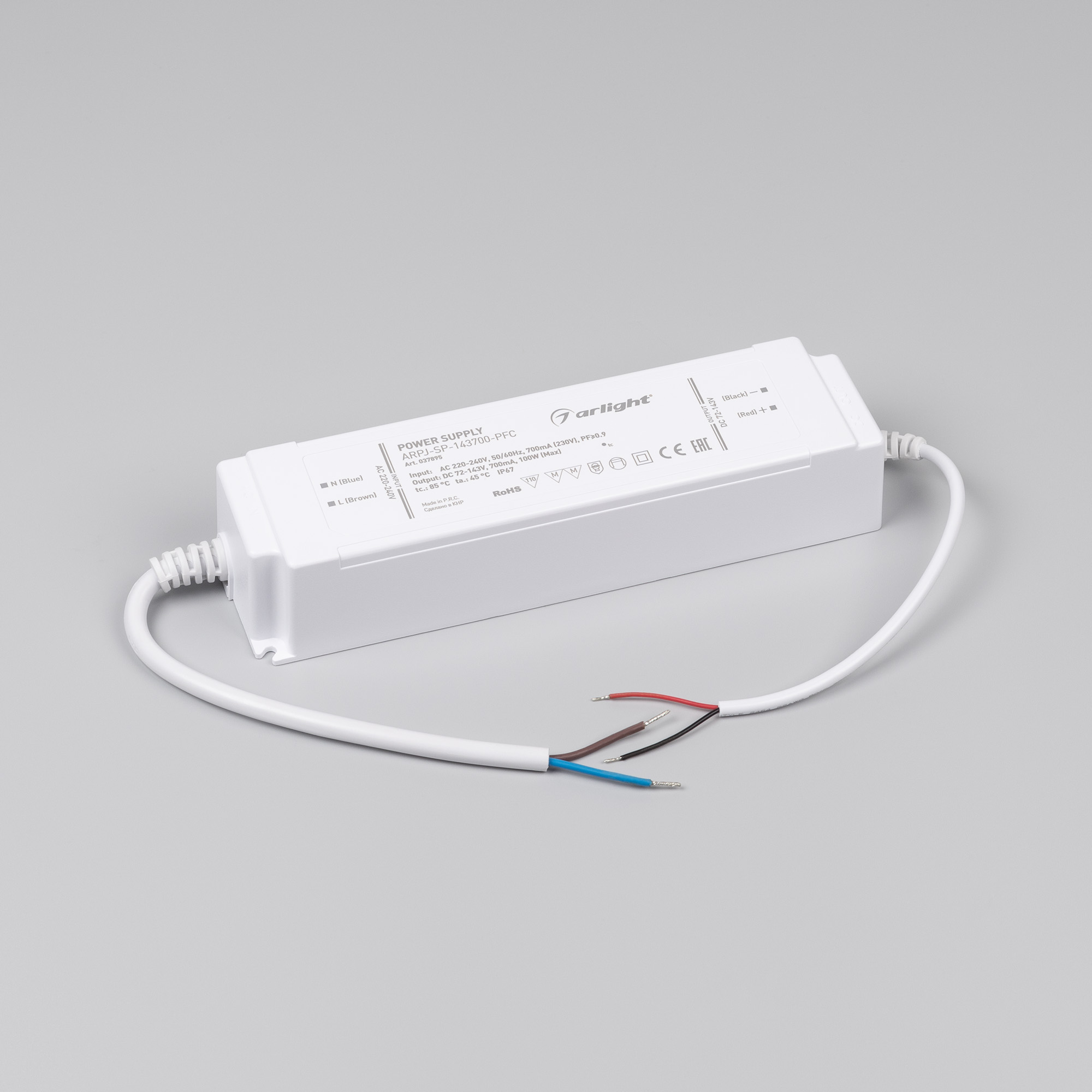 Характеристики - Блок питания ARPJ-SP-143700-PFC (100W, 72-143V, 0.7A) (Arlight, IP67 Пластик, 5 лет)