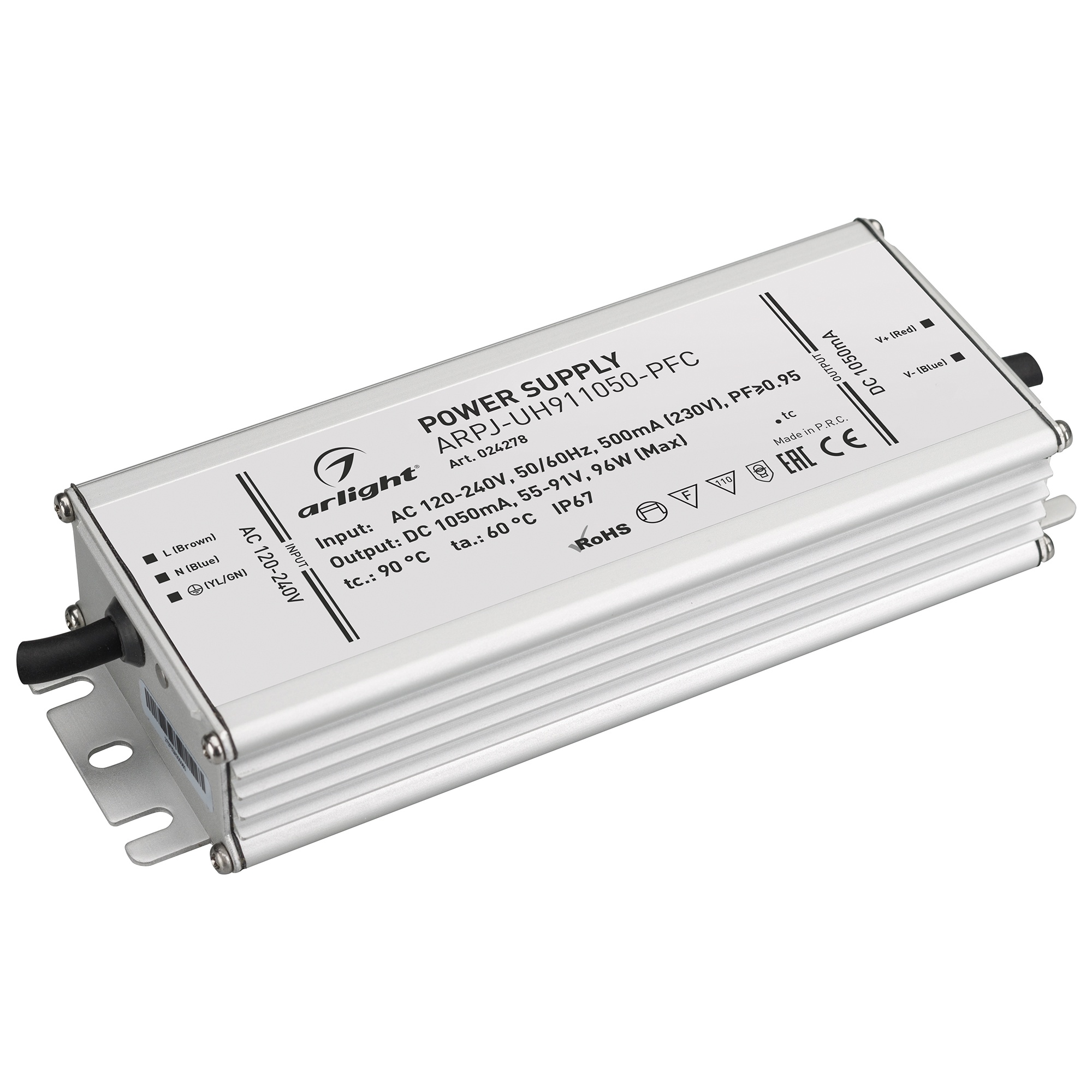 Характеристики - Блок питания ARPJ-UH911050-PFC (96W, 1.05A) (Arlight, IP67 Металл, 7 лет)