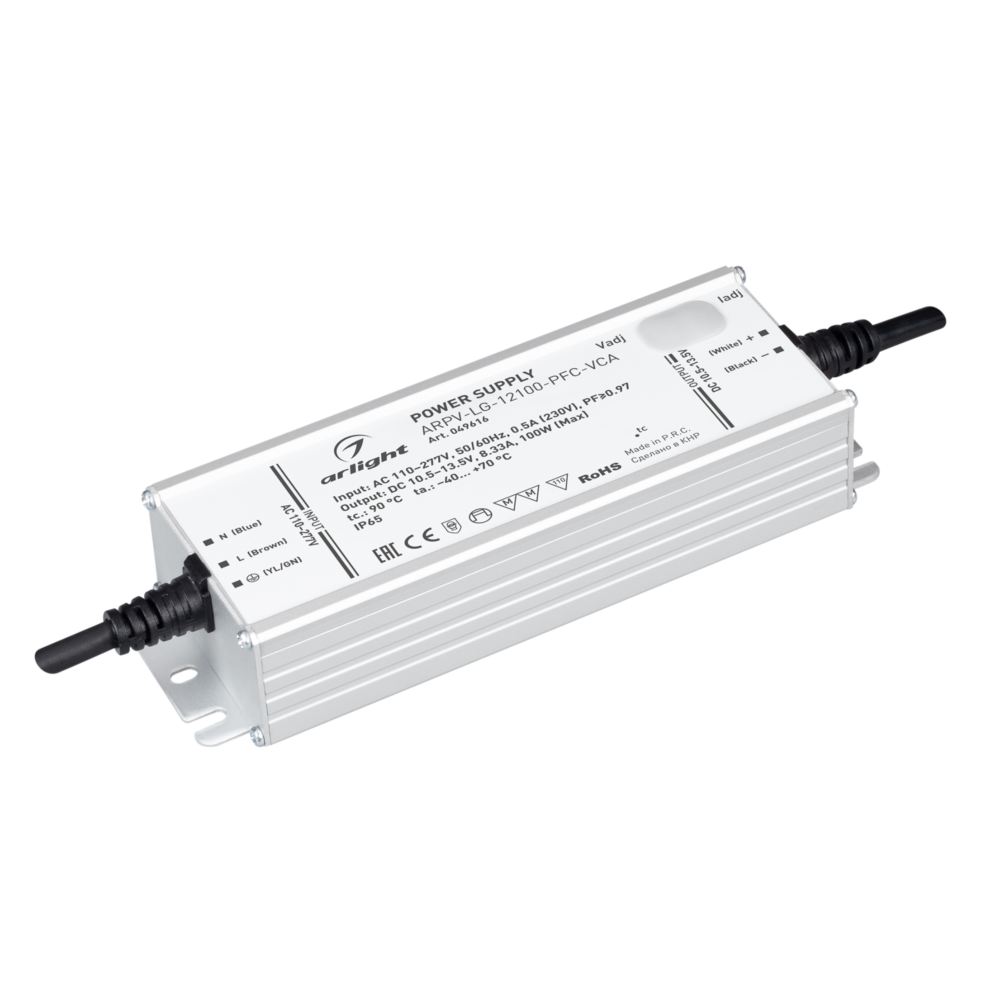 Характеристики - Блок питания ARPV-LG-12100-PFC-VCA (10.5-13.5V, 8.33A, 100W) (Arlight, IP65 Металл, 5 лет)