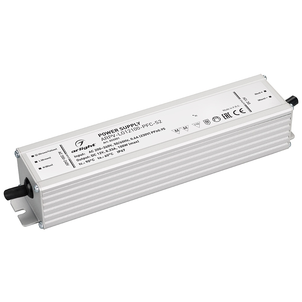 Характеристики - Блок питания ARPV-LG12100-PFC-S2 (12V, 8.3A, 100W) (Arlight, IP67 Металл, 5 лет)