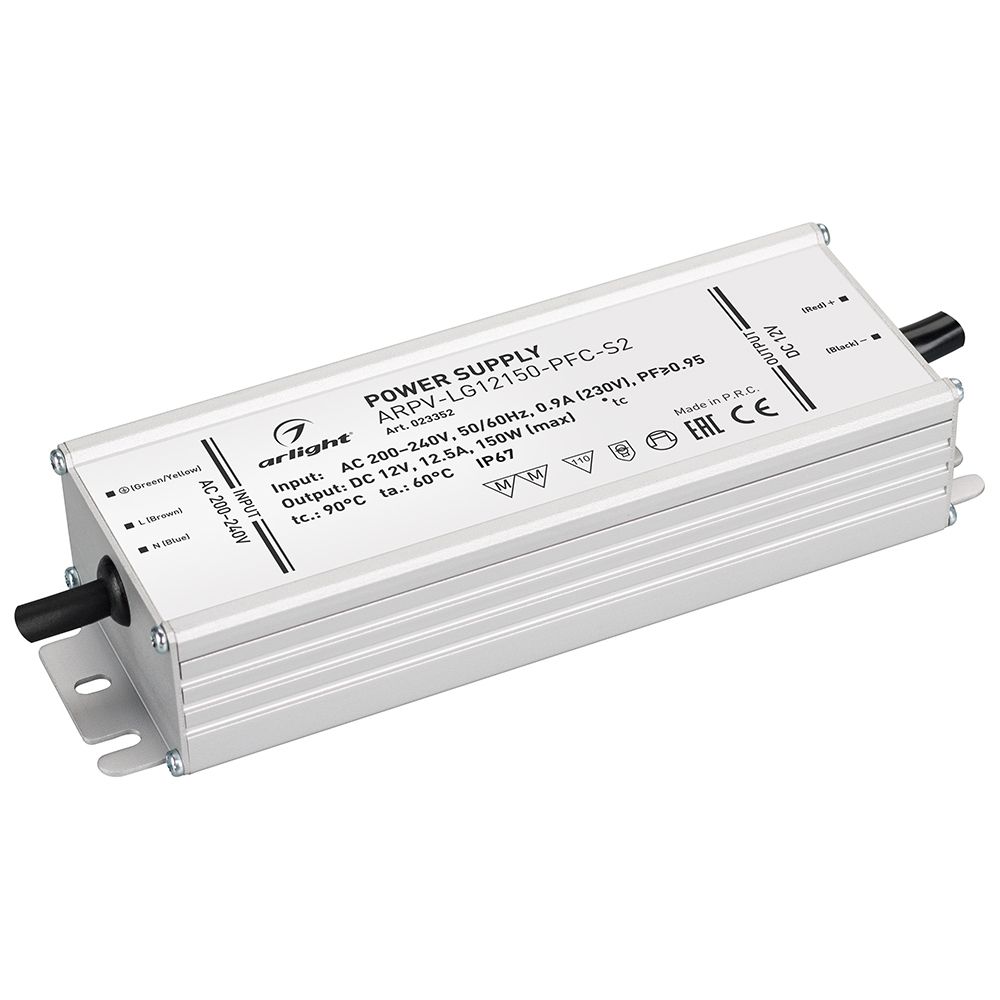 Характеристики - Блок питания ARPV-LG12150-PFC-S2 (12V, 12.5A, 150W) (Arlight, IP67 Металл, 5 лет)