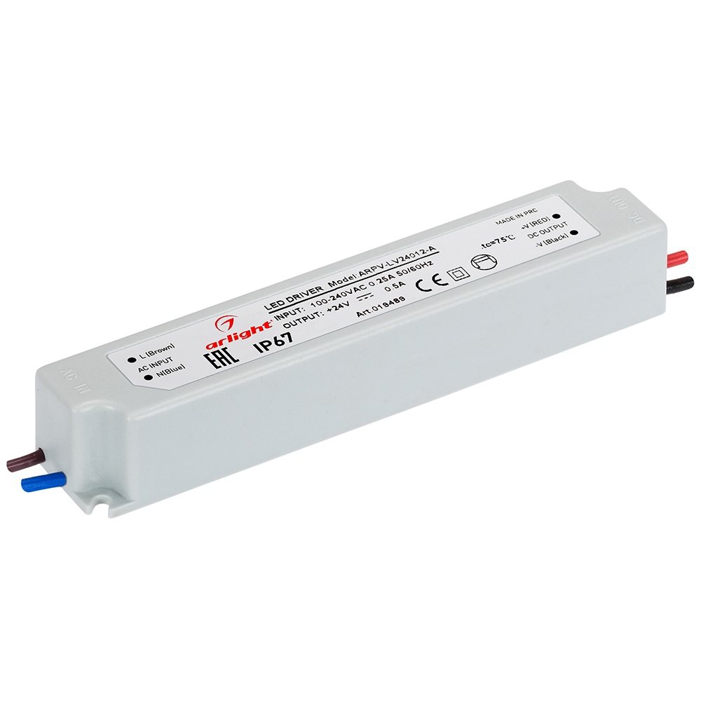 Характеристики - Блок питания ARPV-LV24012-A (24V, 0.5A, 12W) (Arlight, IP67 Пластик, 3 года)