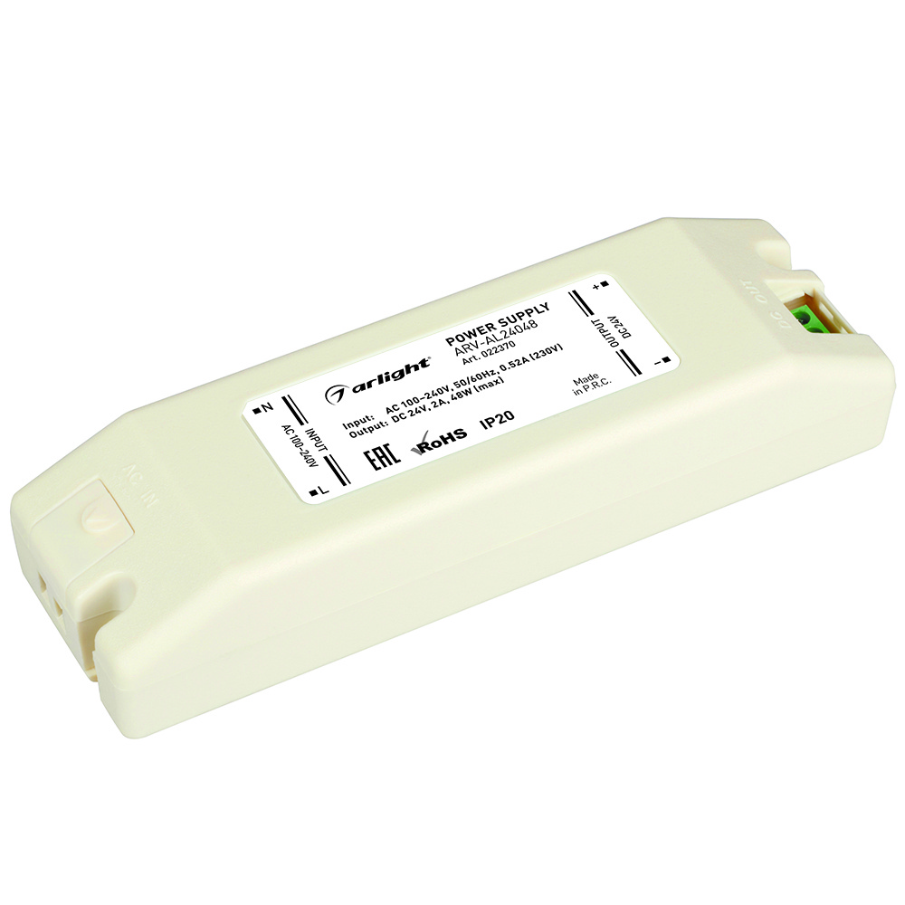 Характеристики - Блок питания ARV-AL24048 (24V, 2A, 48W) (Arlight, IP20 Пластик, 2 года)