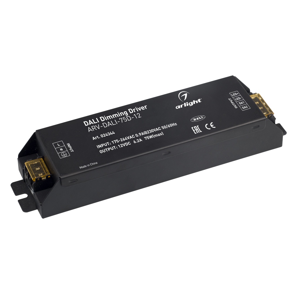 Характеристики - Блок питания ARV-DALI-75D-12 (12V, 6.2A, 75W, DALI) (Arlight, IP20 Металл, 2 года)