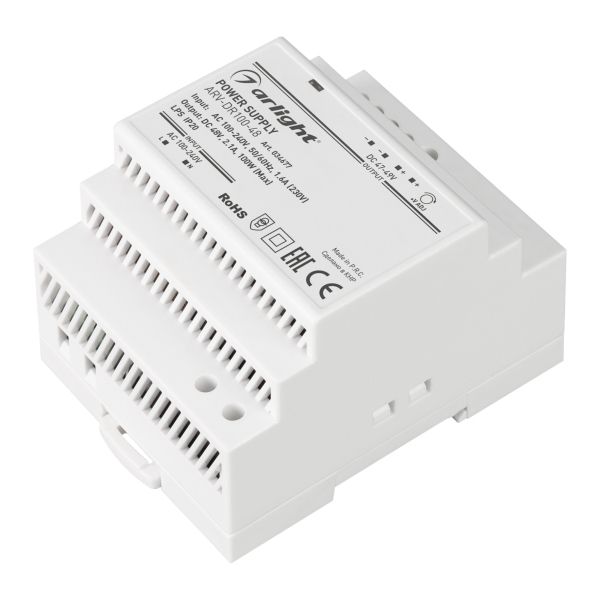 Характеристики - Блок питания ARV-DR100-48 (48V, 2.1A, 100W) (Arlight, IP20 DIN-рейка)