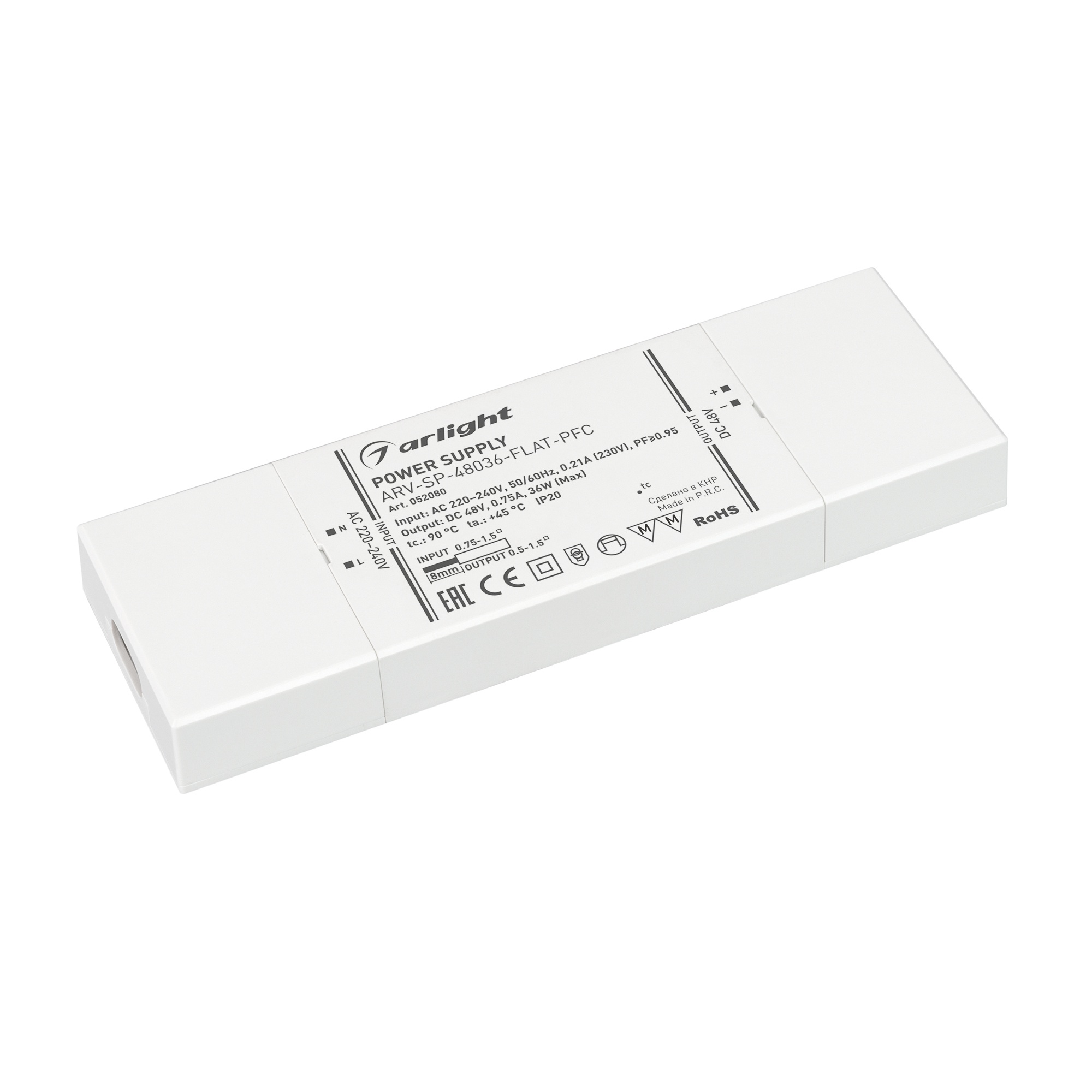 Характеристики - Блок питания ARV-SP-48036-FLAT-PFC (48V, 0.75A, 36W) (Arlight, IP20 Пластик, 5 лет)