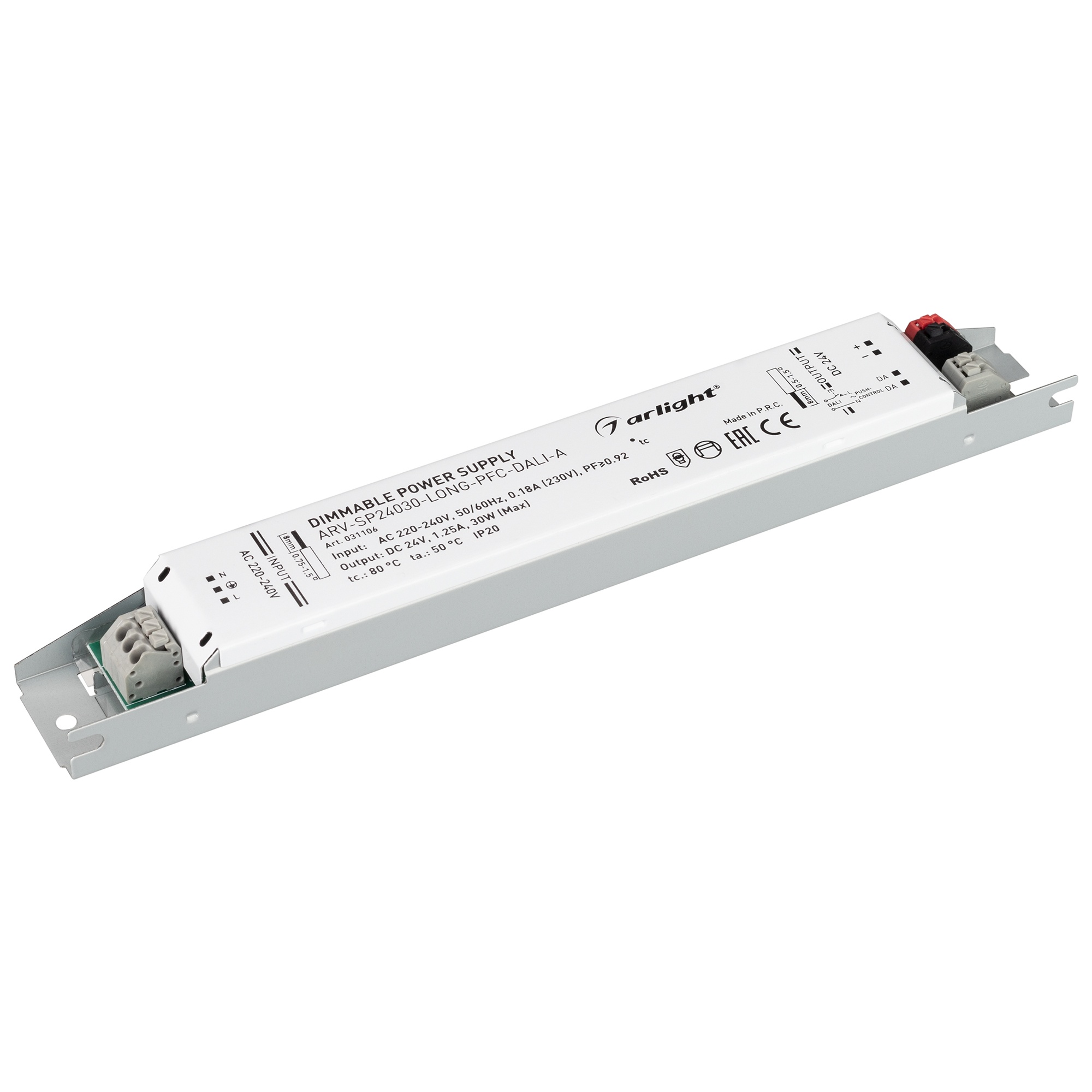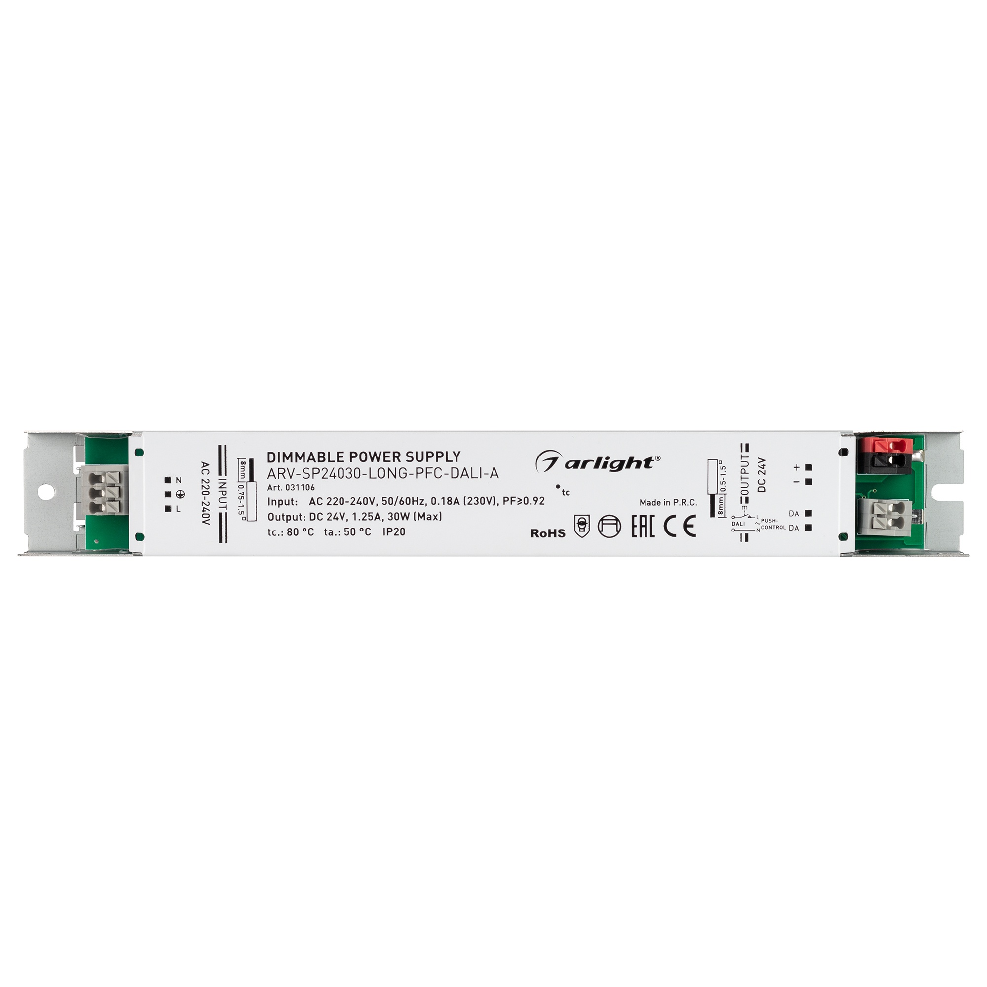 Характеристики - Блок питания ARV-SP24030-LONG-PFC-DALI-A (24V, 1.25A, 30W) (Arlight, IP20 Металл, 5 лет)