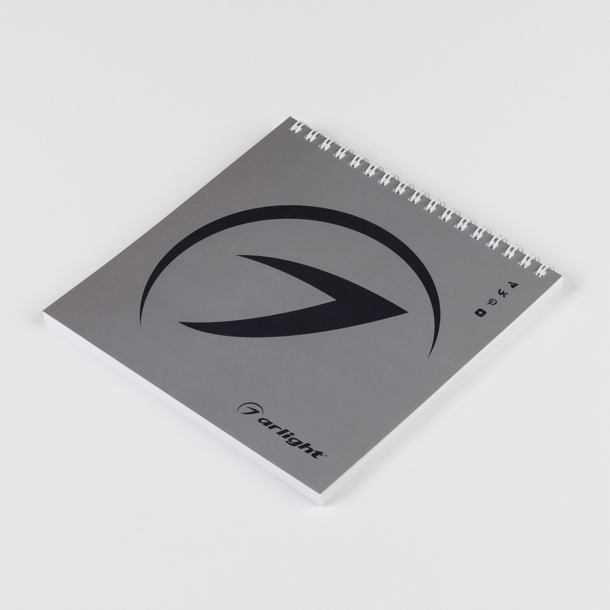 Блокнот Arlight, брендированный, размер 150×155 мм, линовка в клетку, 50 листов, на пружине.