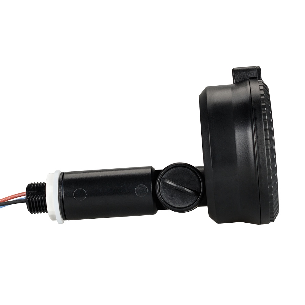 Микроволновый датчик движения, совмещенный с датчиком освещенности (черный корпус), работает через двери и тонкие стены, регулировка времени (5с–30мин), освещенности (2-50люкс), напряжение питания 220-240VAC, нагрузка 400 Вт, влагозащищенный IP65, размеры DxH 72x34 мм.